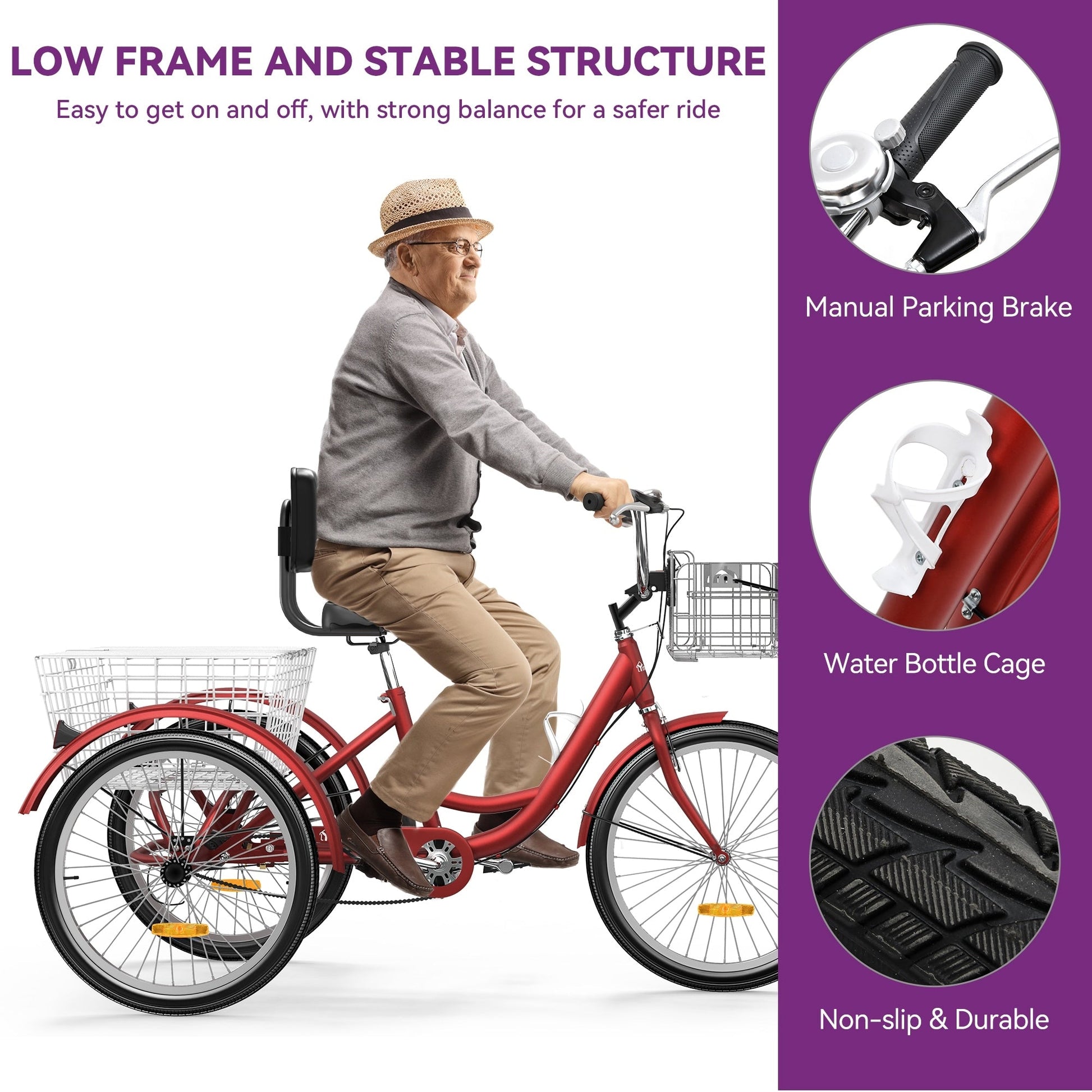 26 Blue Adult Tricycle 3 Wheel Bikes with...