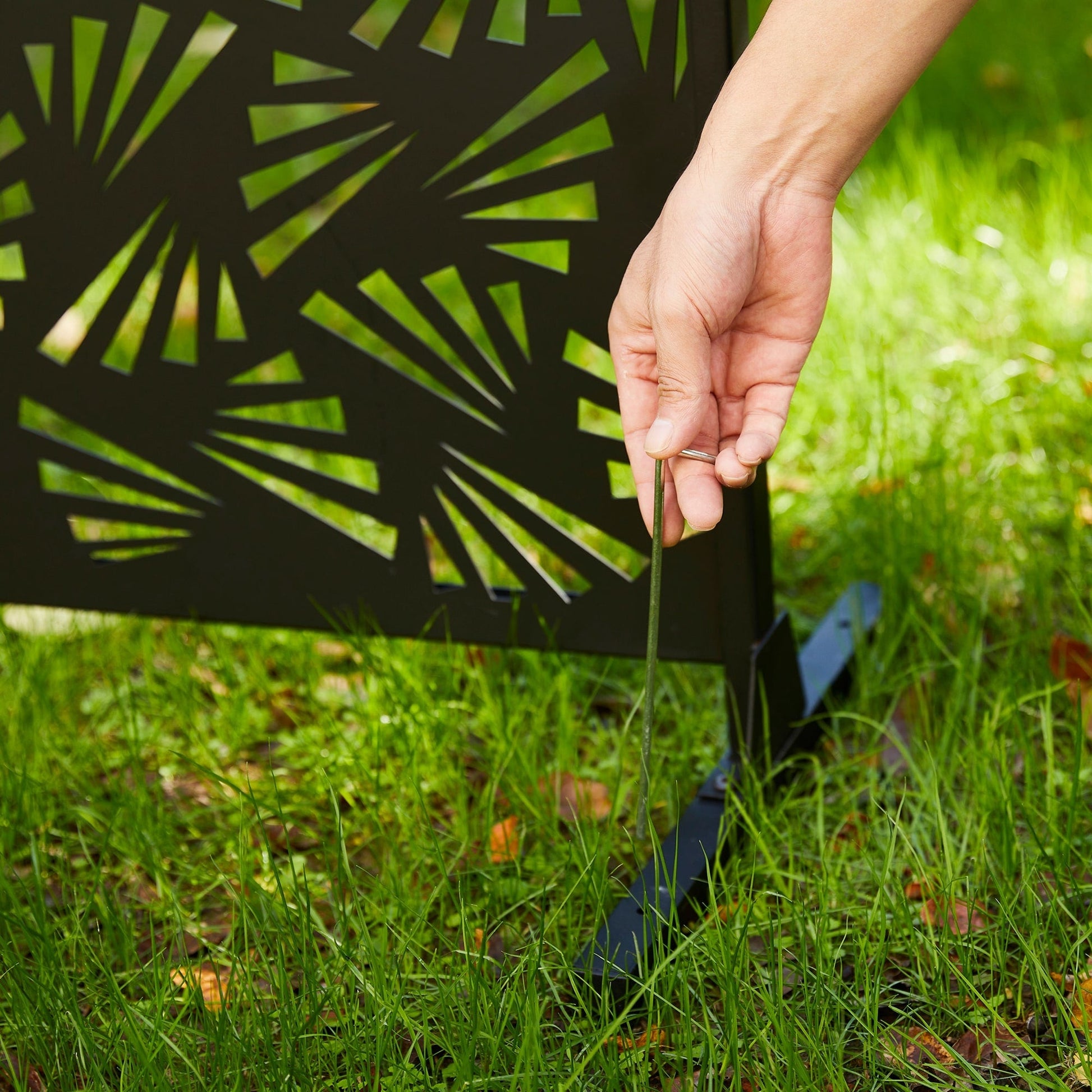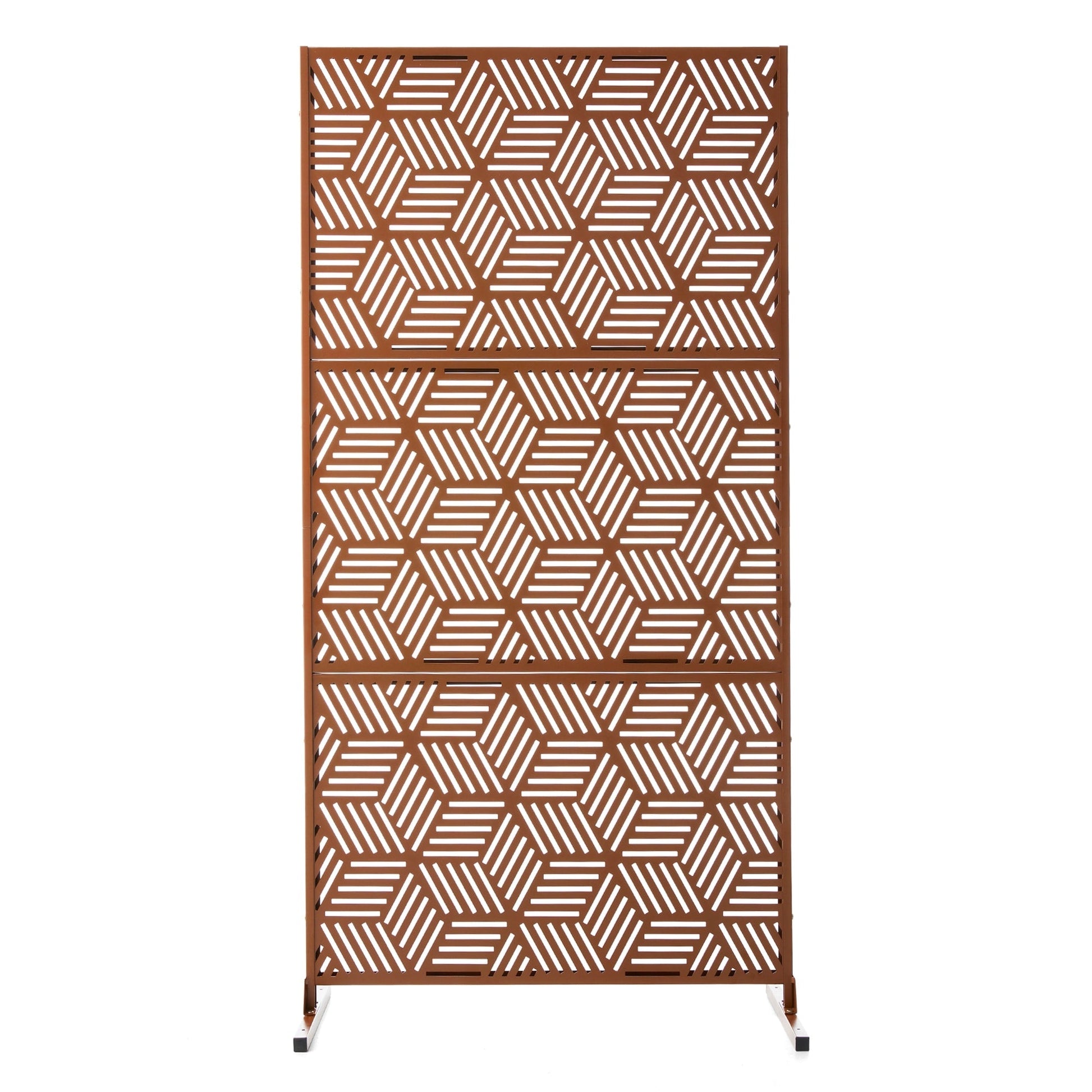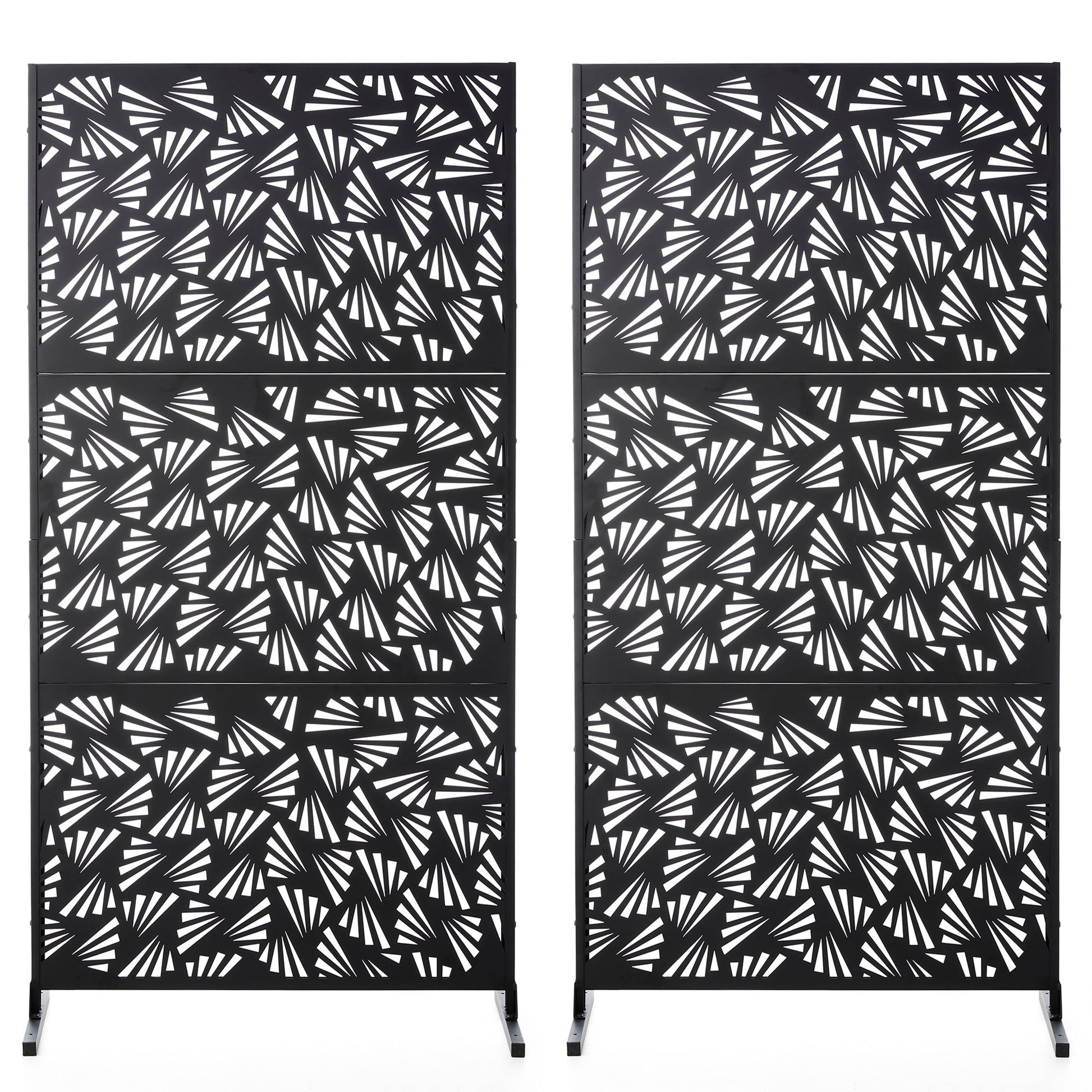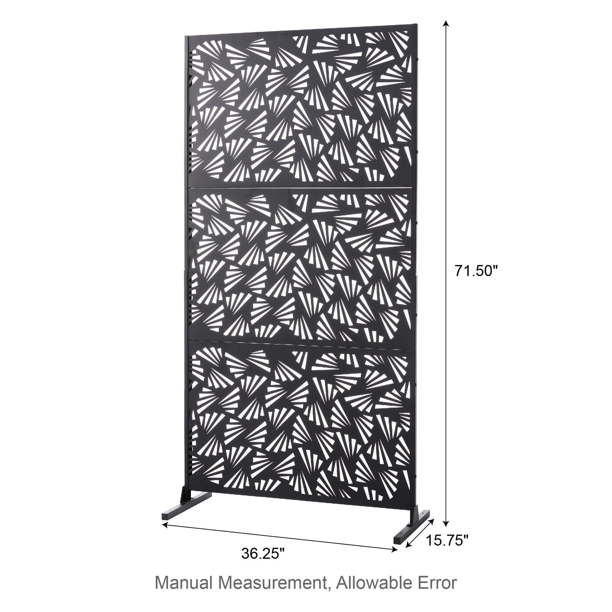 Glitzhome 6ft Galvanized Floral Patterned 3-Panel Privacy Screen...
