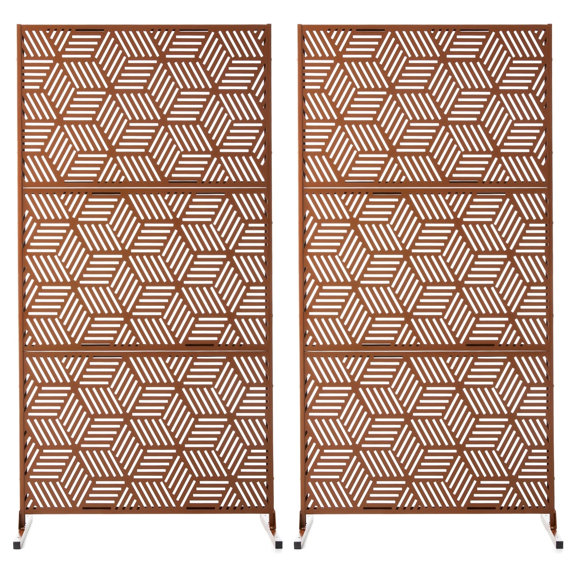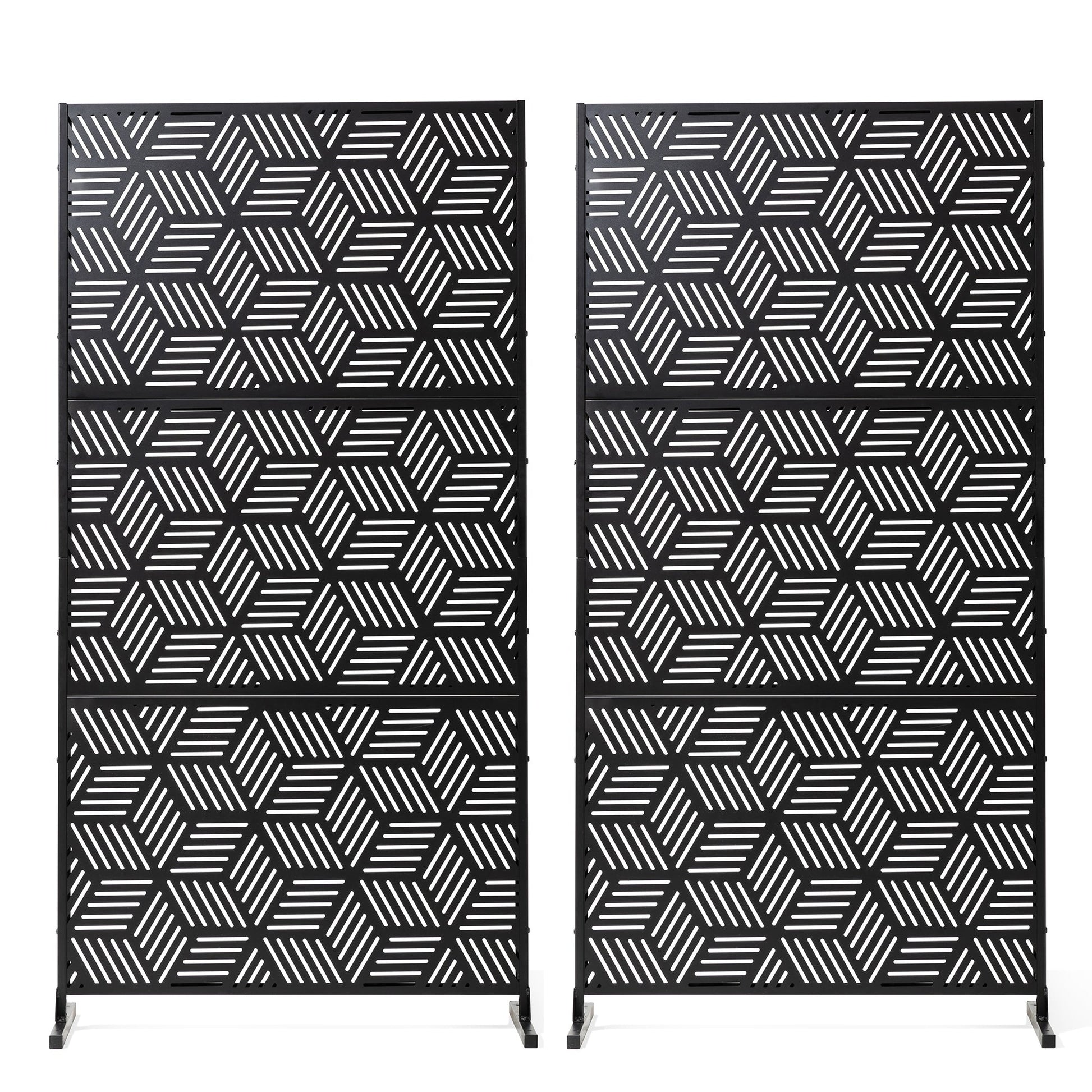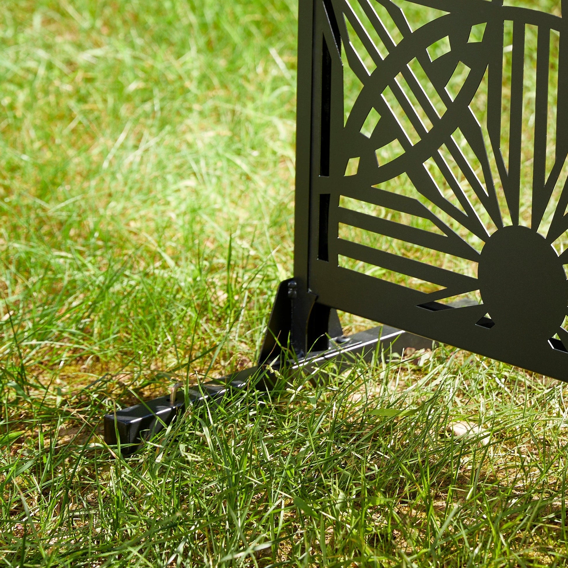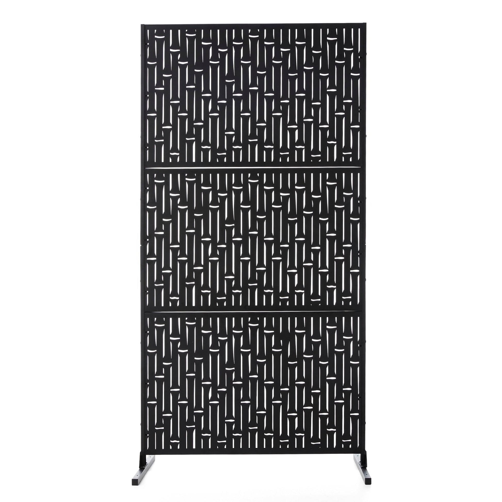 Glitzhome 6ft Galvanized Floral Patterned 3-Panel Privacy Screen...