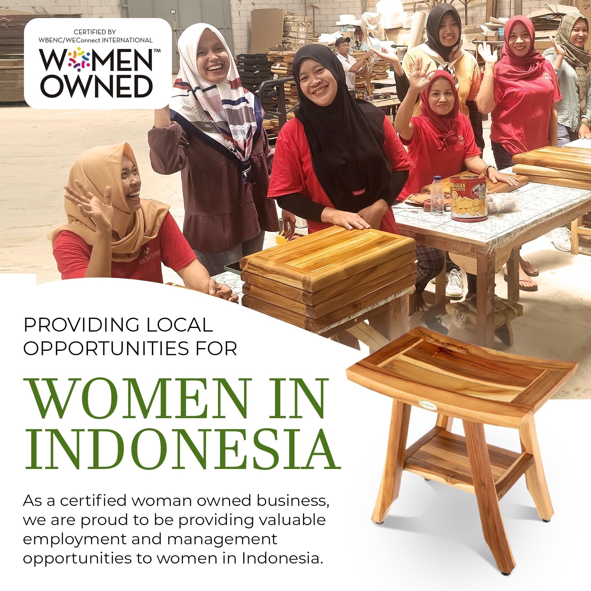 • Created with Care: Proudly designed by a woman-owned company, the Satori shower teak bench represents a commitment to both quality craftsmanship and diverse business ownership. This wooden shower bench seamlessly blends aesthetics with functionality.