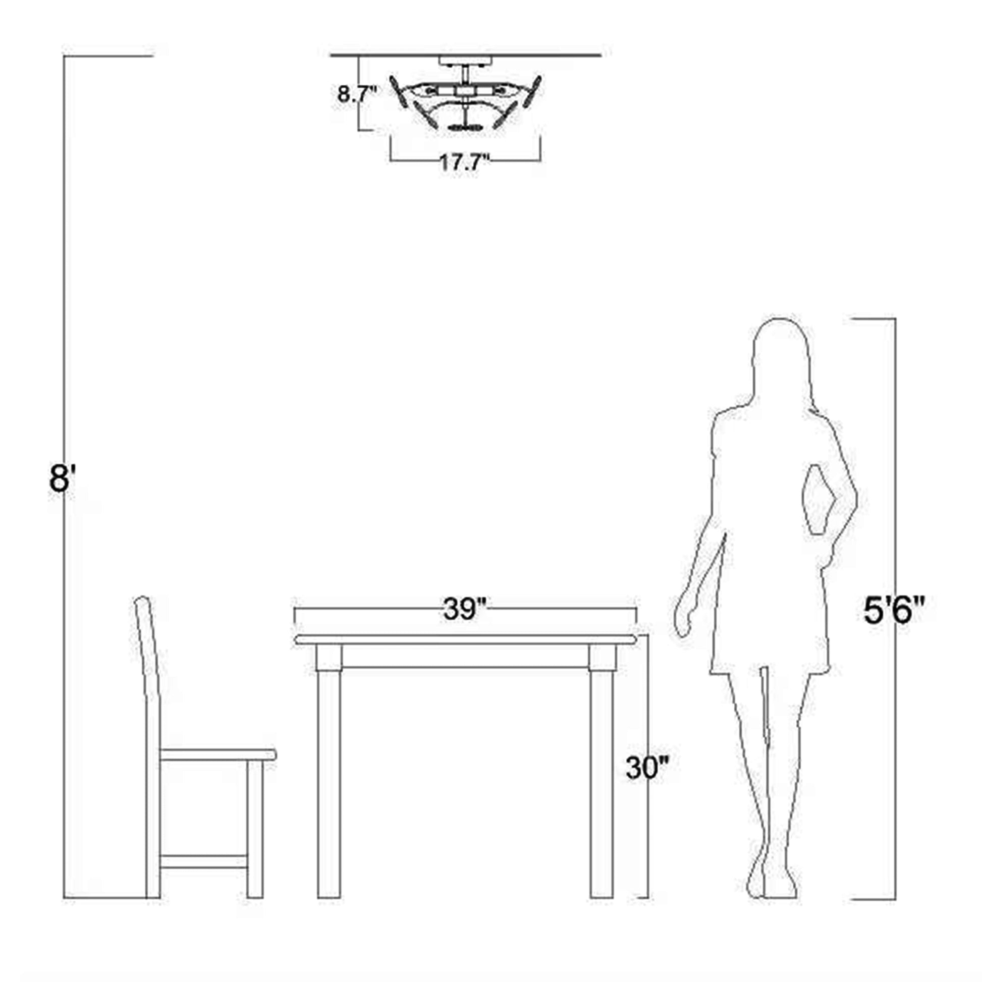 17.7 inches in diameter x 8.7 inches H