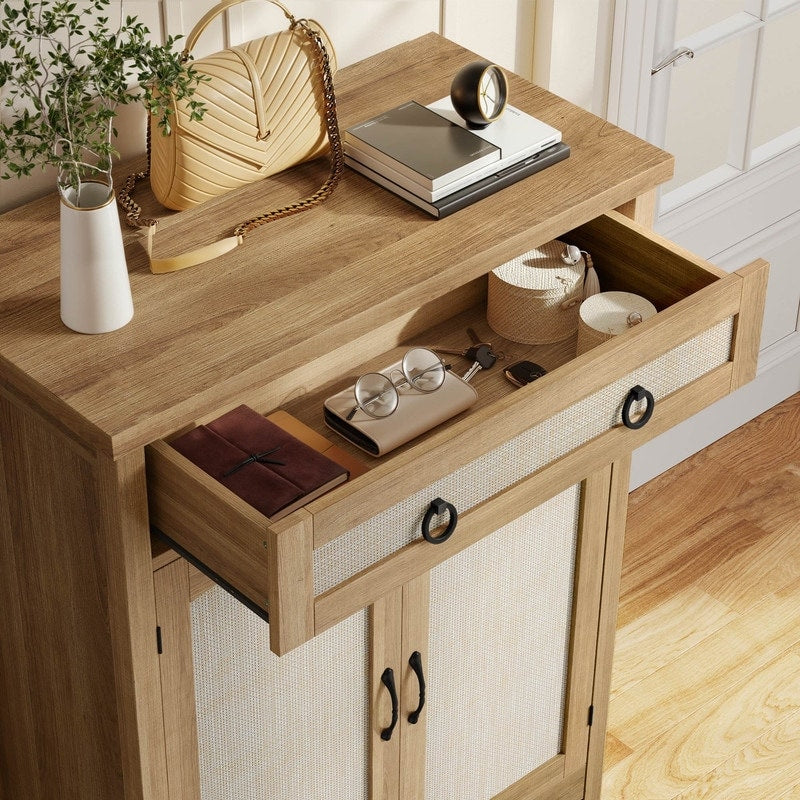 • Large storage space accommodates 15-20 pairs of shoes and small items.