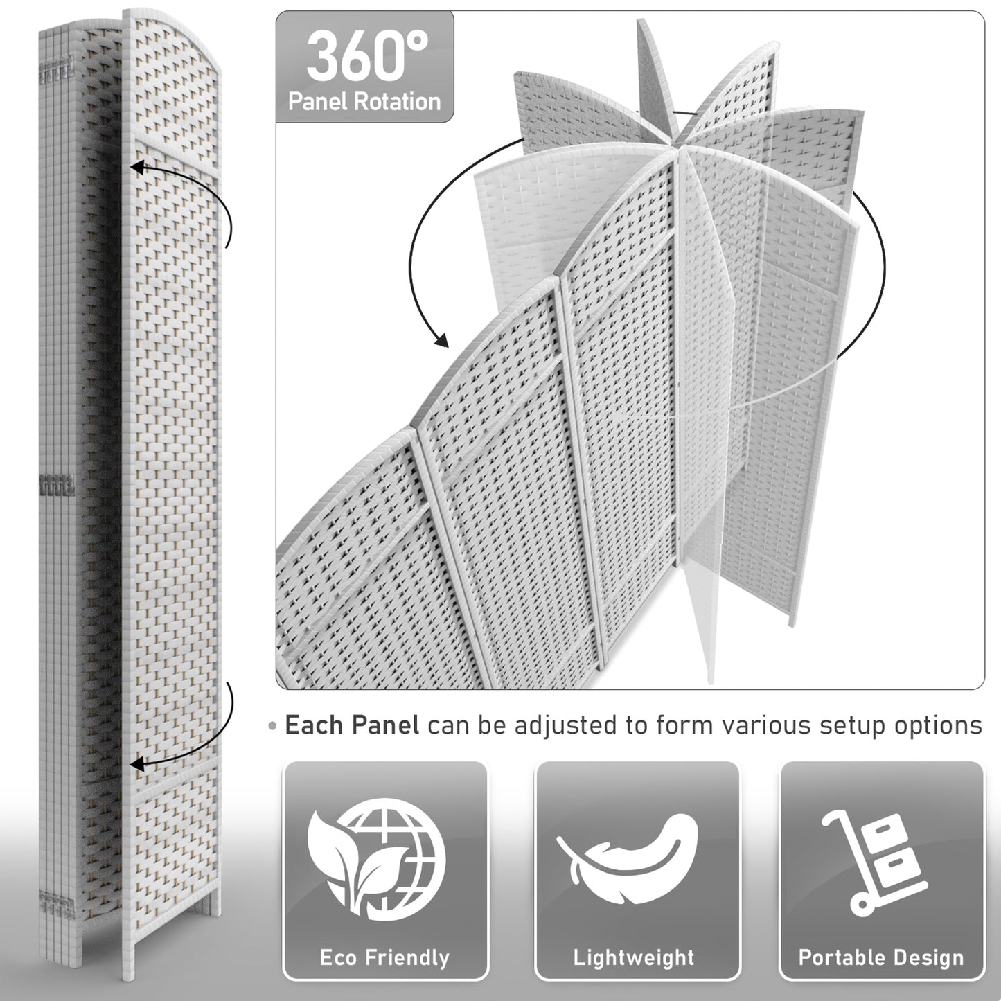 • Versatile Functionality: Use as a room divider wall, partition wall, folding privacy screen, privacy wall, panel room divider, or freestanding privacy screen