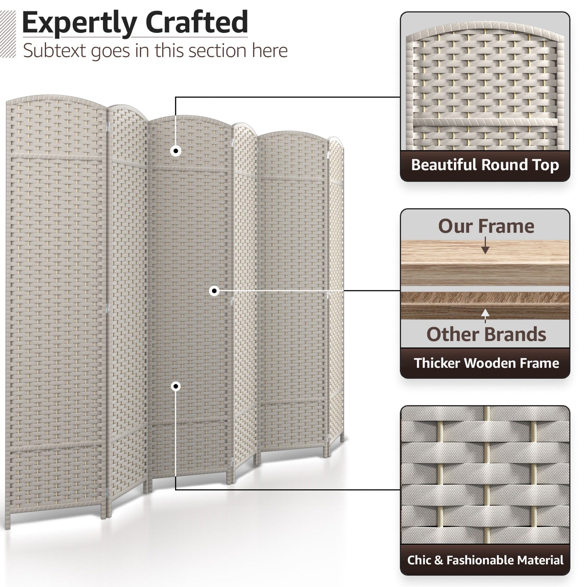 • Extra Wide Double Hinged Panels: Equipped with 6 double hinged panels and measuring 6 ft. tall, this room divider is extra wide for maximum coverage.