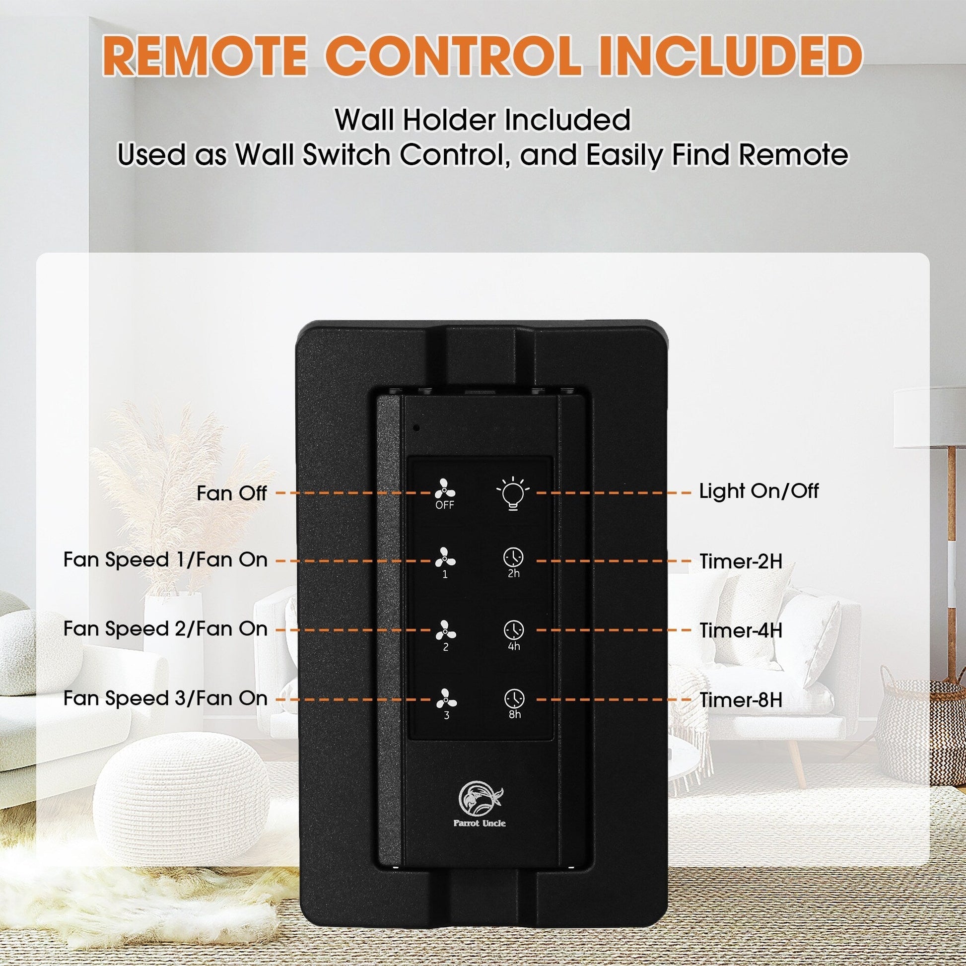 • Handheld remote control included for fan speeds and light on/off seperately