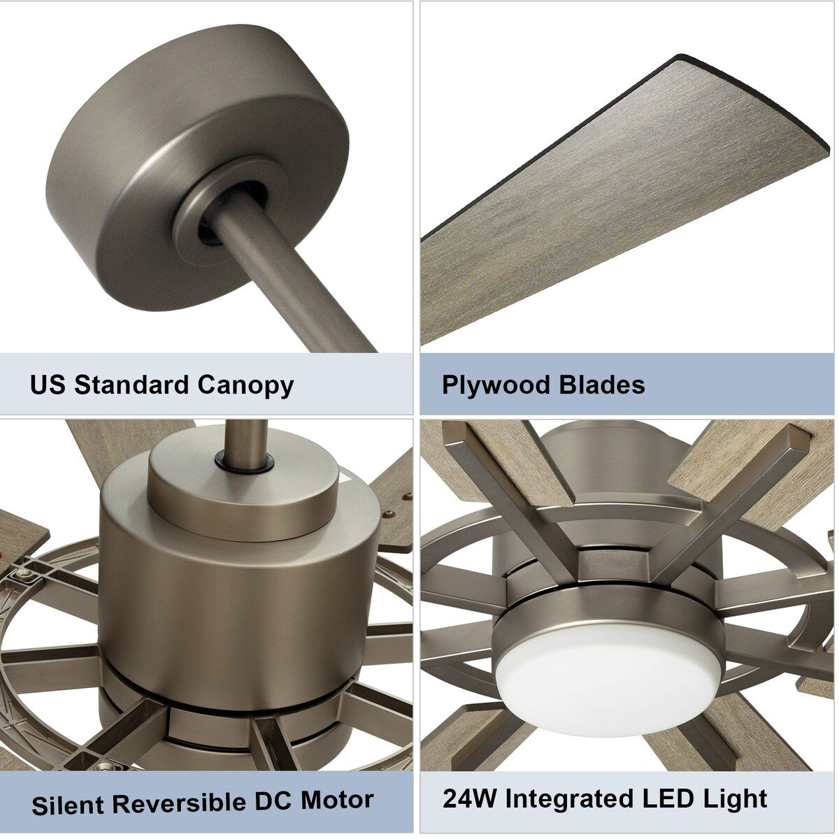 Ceiling fan with light have a large size, suitable for large living room, bed rooms any outdoor covered patios. Industrial design, adopt wood and metal design. Reversible ceiling fan allows you to switch the direction of the indoor ceiling fan from downward airflow in summer to upward airflow in winter, to reclaim lost heat from the ceiling and reduce energy costs.