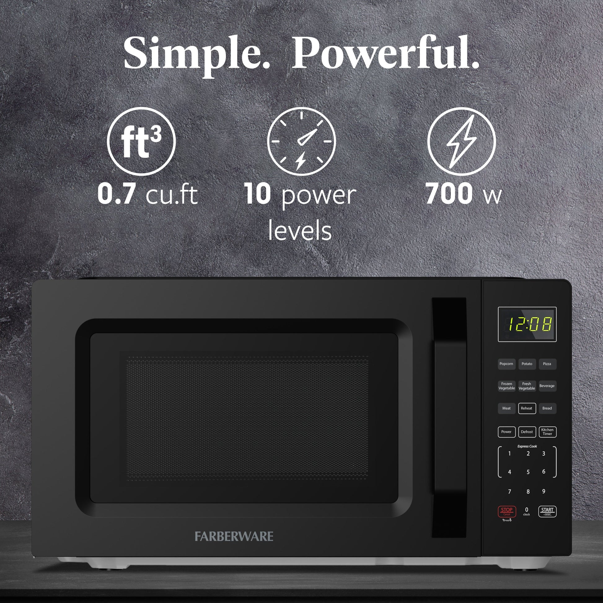 • COMPACT SIZE AND HIGH PERFORMANCE: 700W microwave with a 0.7 cu. ft. capacity, ideal for small spaces like kitchens, dorm rooms, and offices.