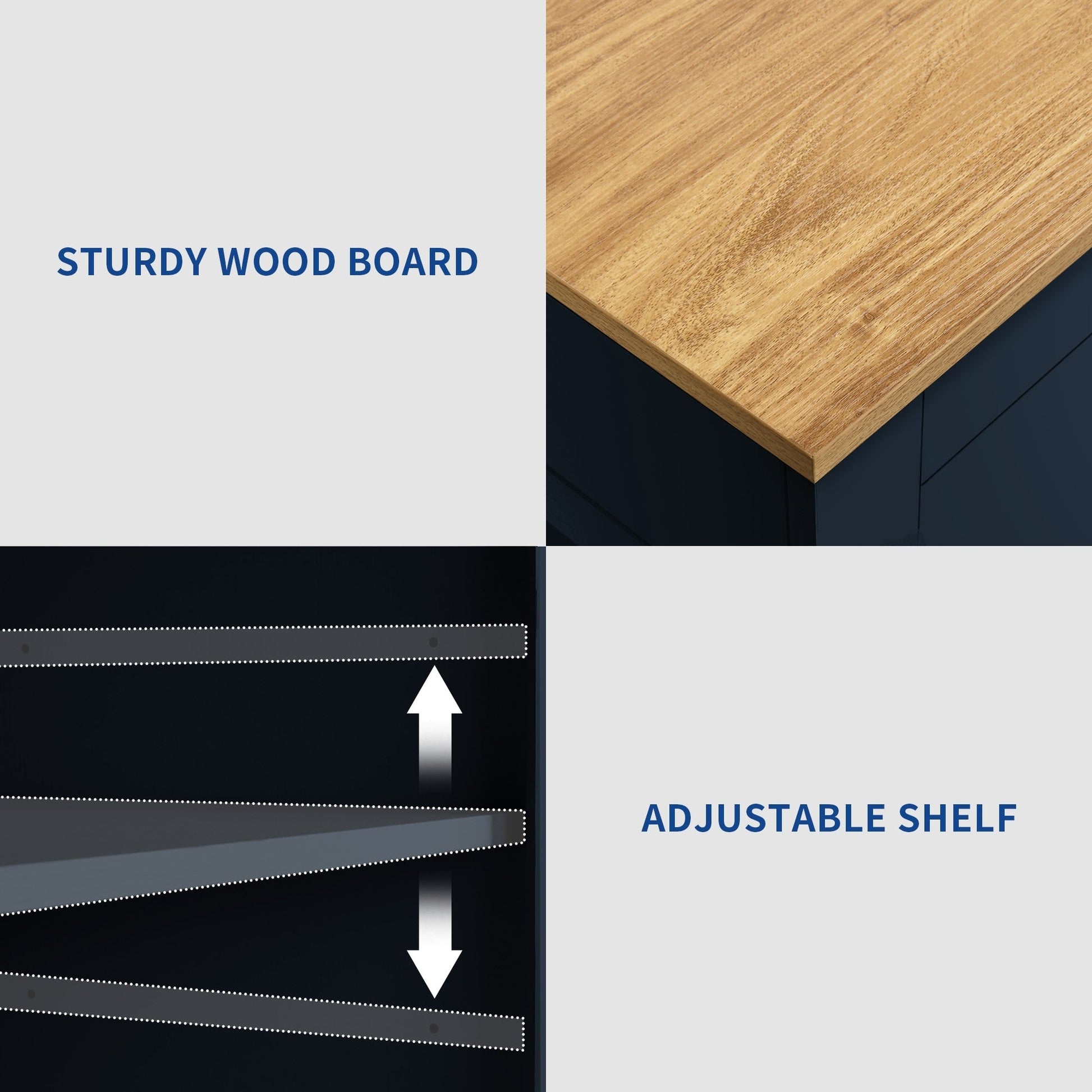 • Includes 2 drawers and 3 shelves for organized kitchen storage.
