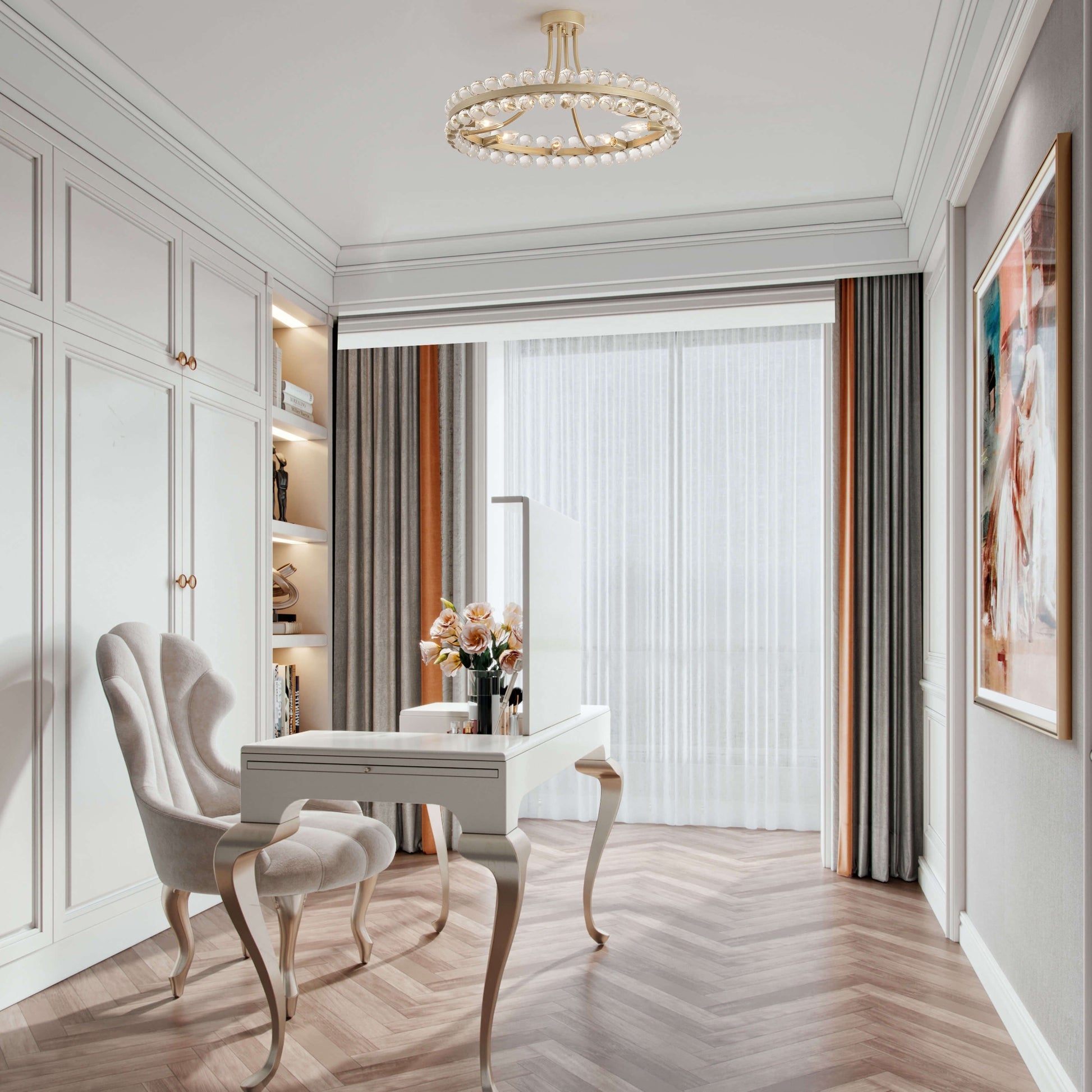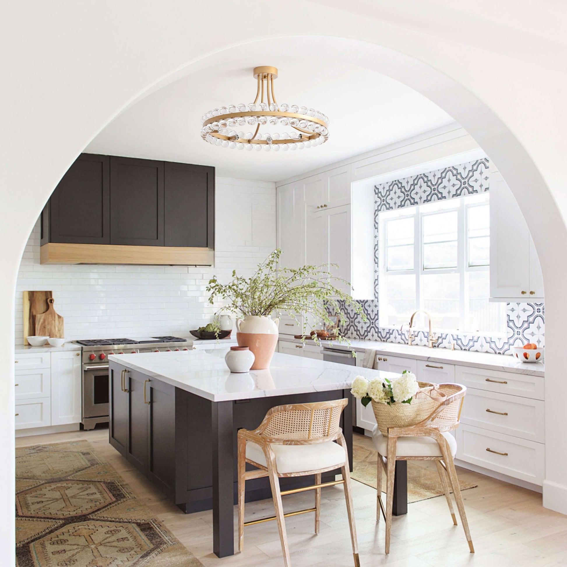 Illuminate your home with the Elvira 8-Light Wagon Wheel Crystal Semi-Flush Mount. This exquisite chandelier features an iron ring adorned with ball crystals, creating a captivating and sophisticated look.Designed for versatility, the semi-flush mount style is perfect for lower ceilings and is compatible with dimmer switches. It requires eight (8) 40-watt (E12) bulbs (not included), suitable for incandescent, halogen, or LED lighting.Enhance any space—from dining rooms to entryways—with the Elvira chandelier, a beautiful fusion of timeless elegance and modern style!
