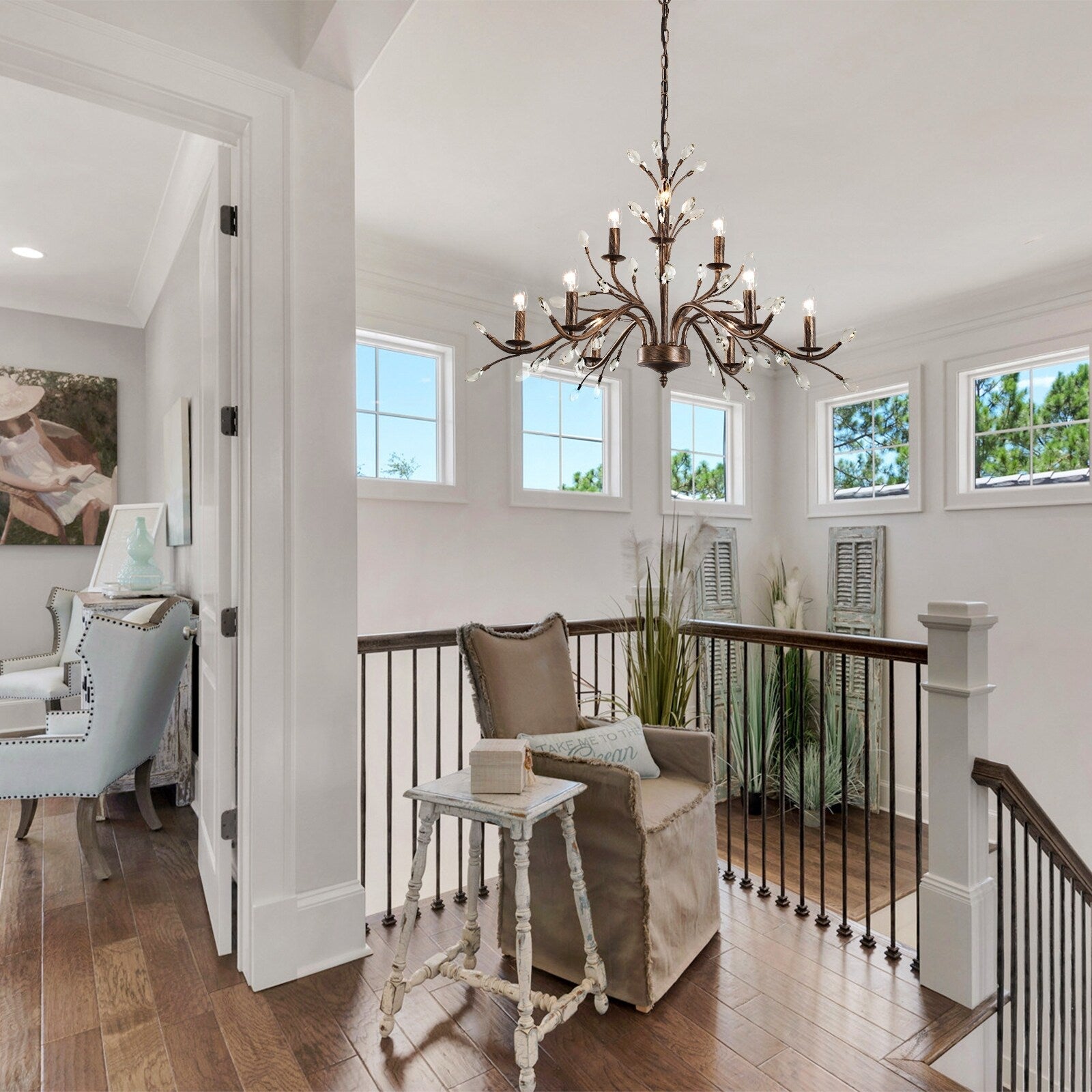 Farmhouse Retro Tree Branch Crystal Chandelier Candle-Style Pendant...