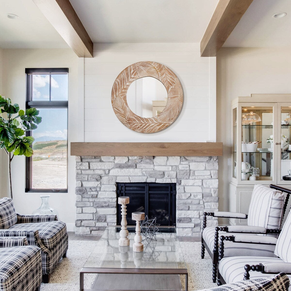 Farmhouse Carved Wood Round Wall Mirror - 28...