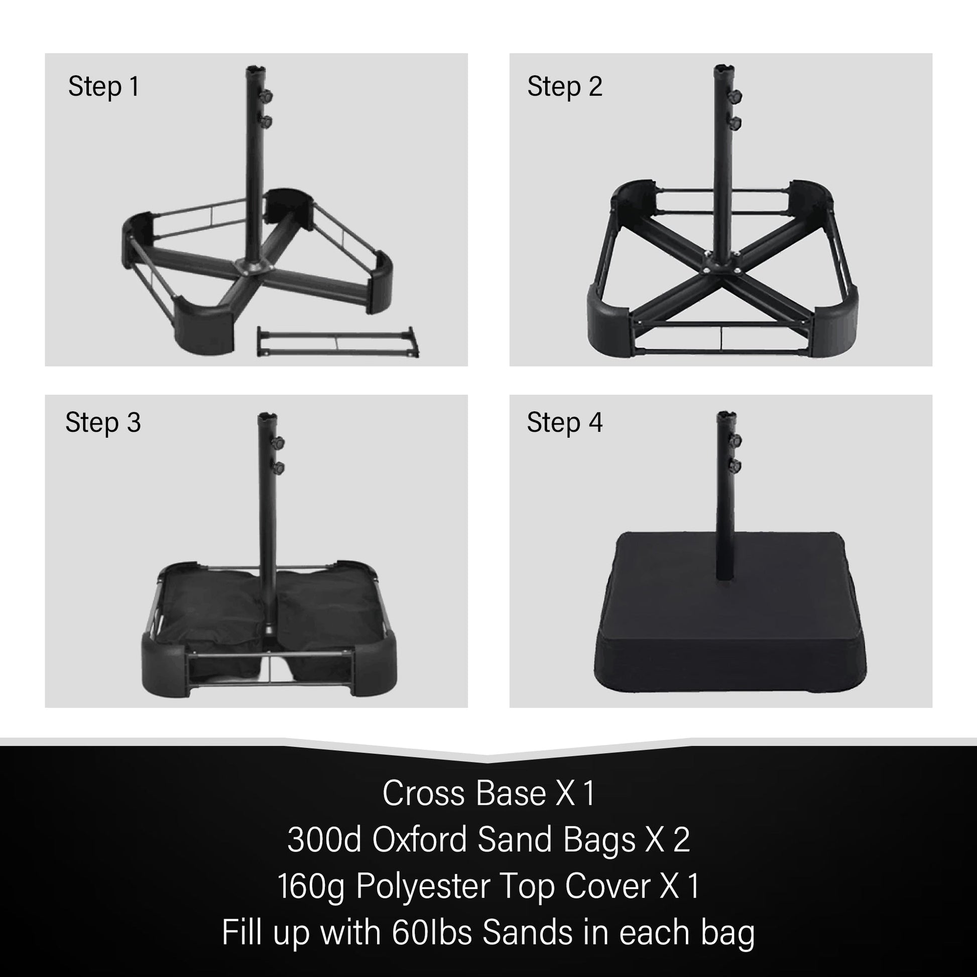 • Base Include (Cross base+ two sandbags + one top cover)