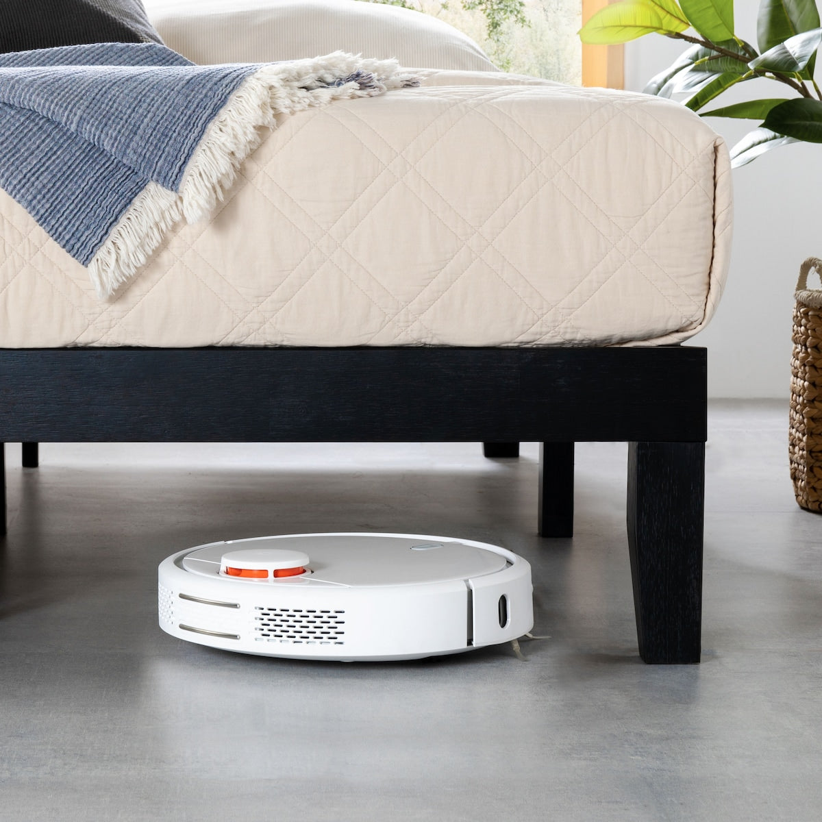 Upgrade your bedroom with this Classic Solid Wood Platform Bed Frame that comes in multiple wood finishes to match your decor. The solid wood frame provides long-lasting support while the raised profile offers ample storage space for boxes and bins underneath. With easy-to-follow instructions and all tools and parts included, this bed can be set up within minutes without requiring a box spring.