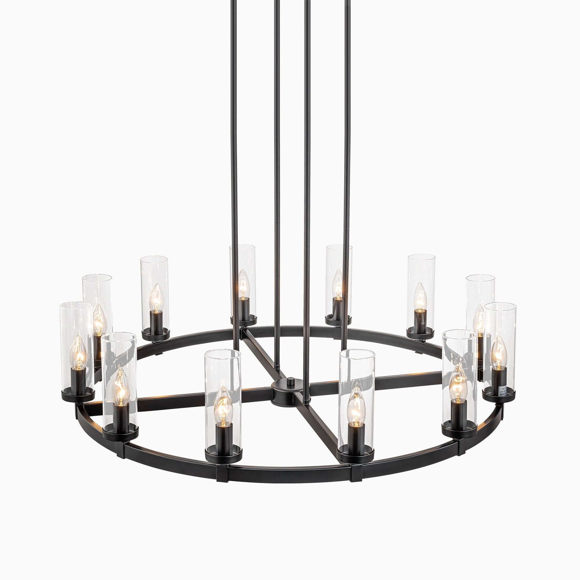 12-Light Mid-Century Modern Cylinder Clear Glass Wagon Wheel...