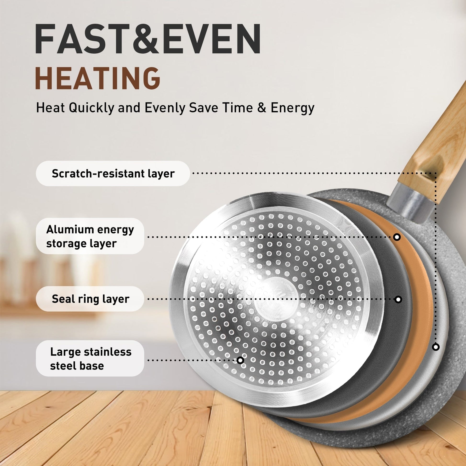 No Toxin Cooking Pans Set:  When purchasing a new kitchenware set, please make sure it clearly states that it is lead-free, PFOS-free, and PFOA-free. Cooking pans cannot contain these three substances as they pose potential risks to the body. Fortunately, you can get granite cookware that is free of these harmful chemicals. For more healthy & Eco-friendly.
