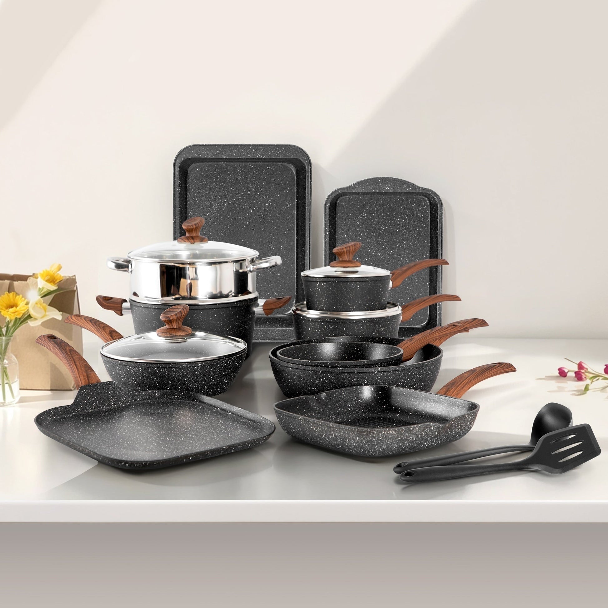 17-Piece Kitchen Granite Cookware Set, Non-stick...
