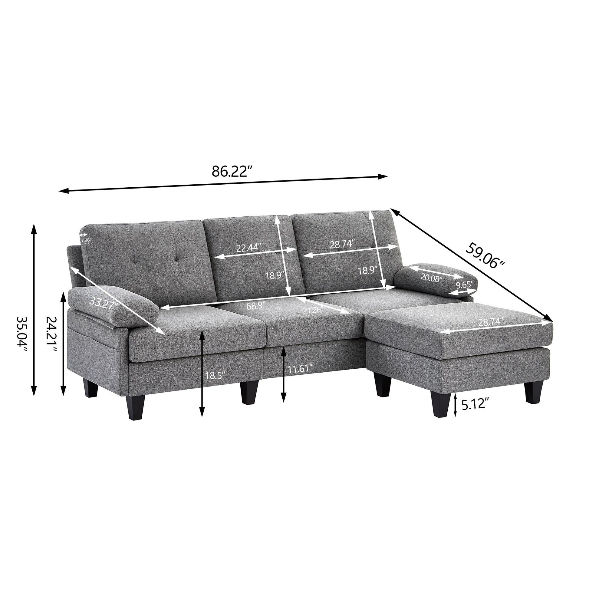 86.22 L Shaped Sectional Sofa with Side Storage...