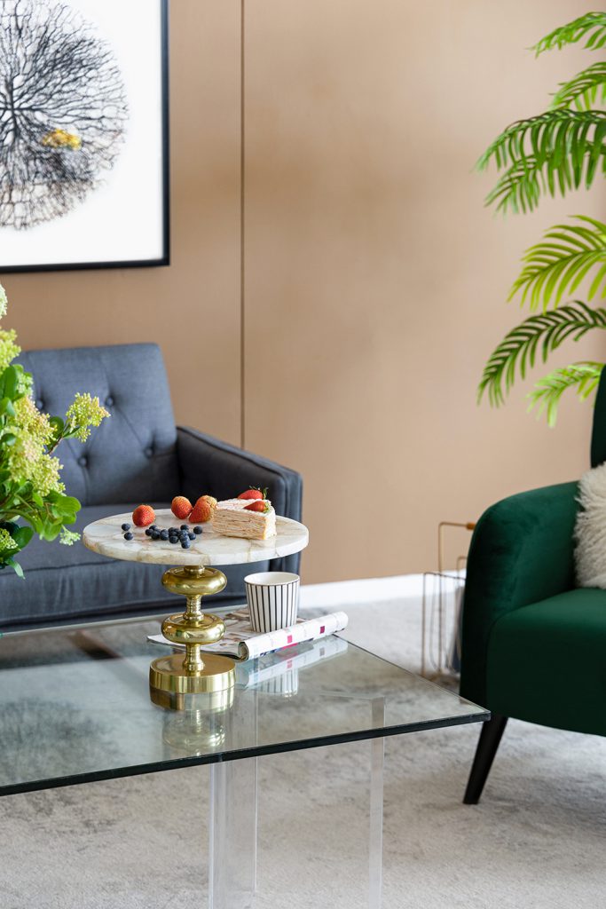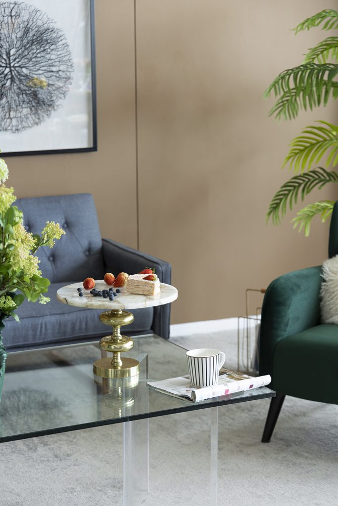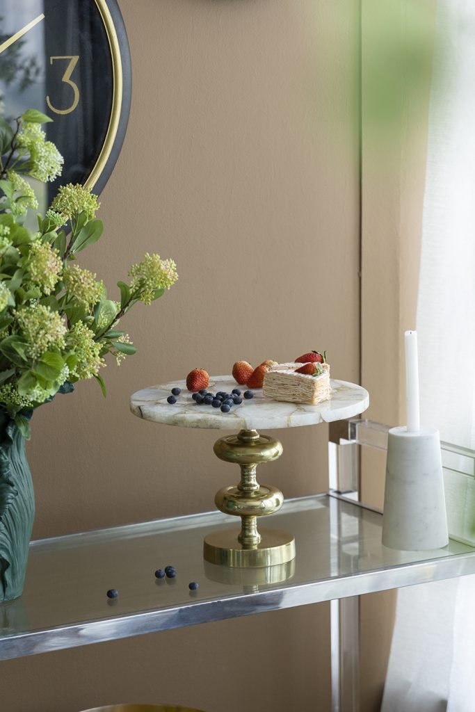 A look that’s delicate and stylish for the modern home, the agate cake stand with metal base is built with a brass spray metal base and tall profile. With its three-tiered design it creates a charming platform for displaying your favorite pastries. Introduce this piece to your kitchen island or breakfast nook for a cool new contemporary vibe.