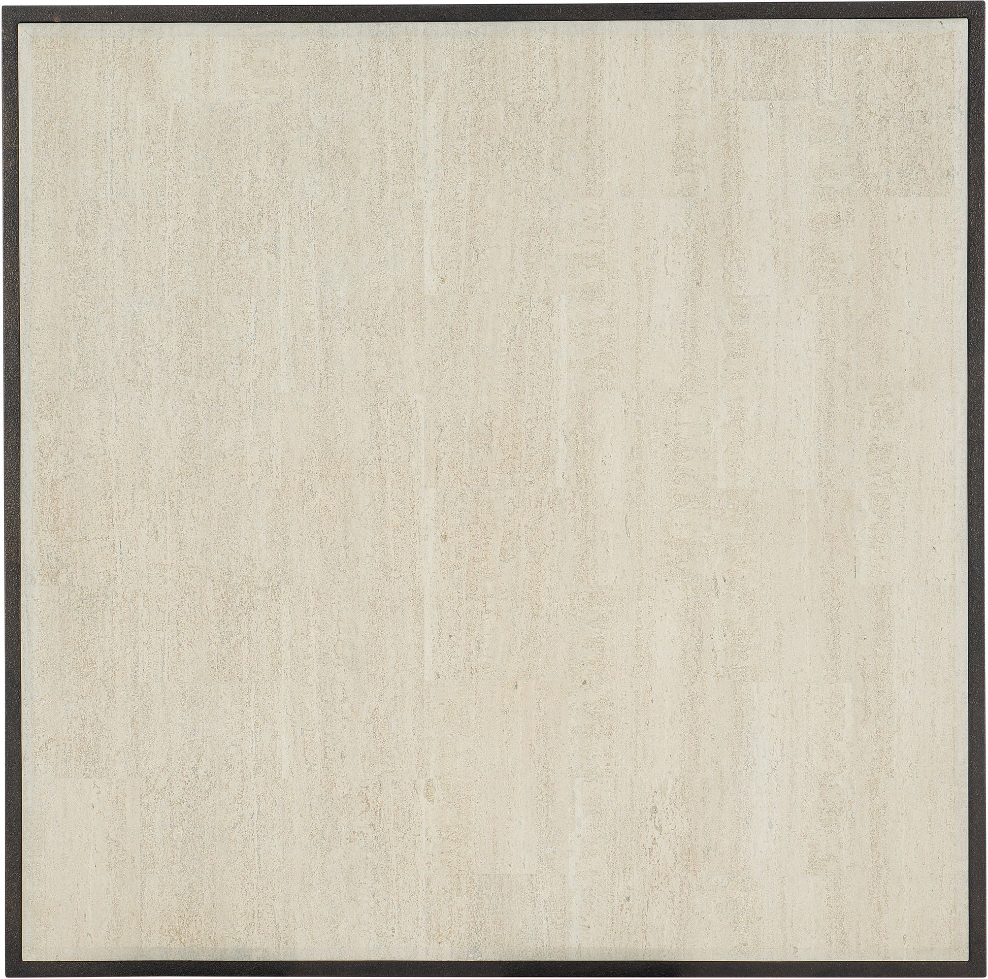 - Dark charcoal textured metal frame with creamy beige marble top