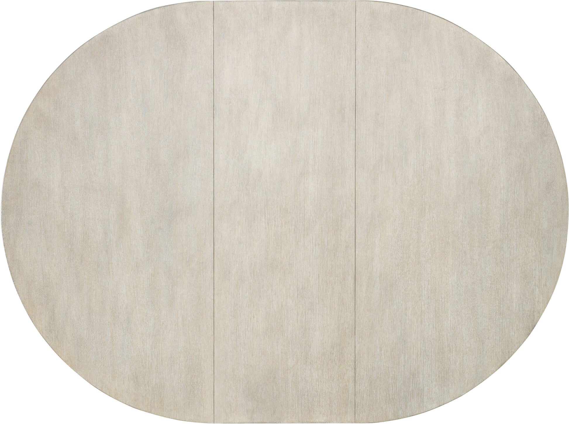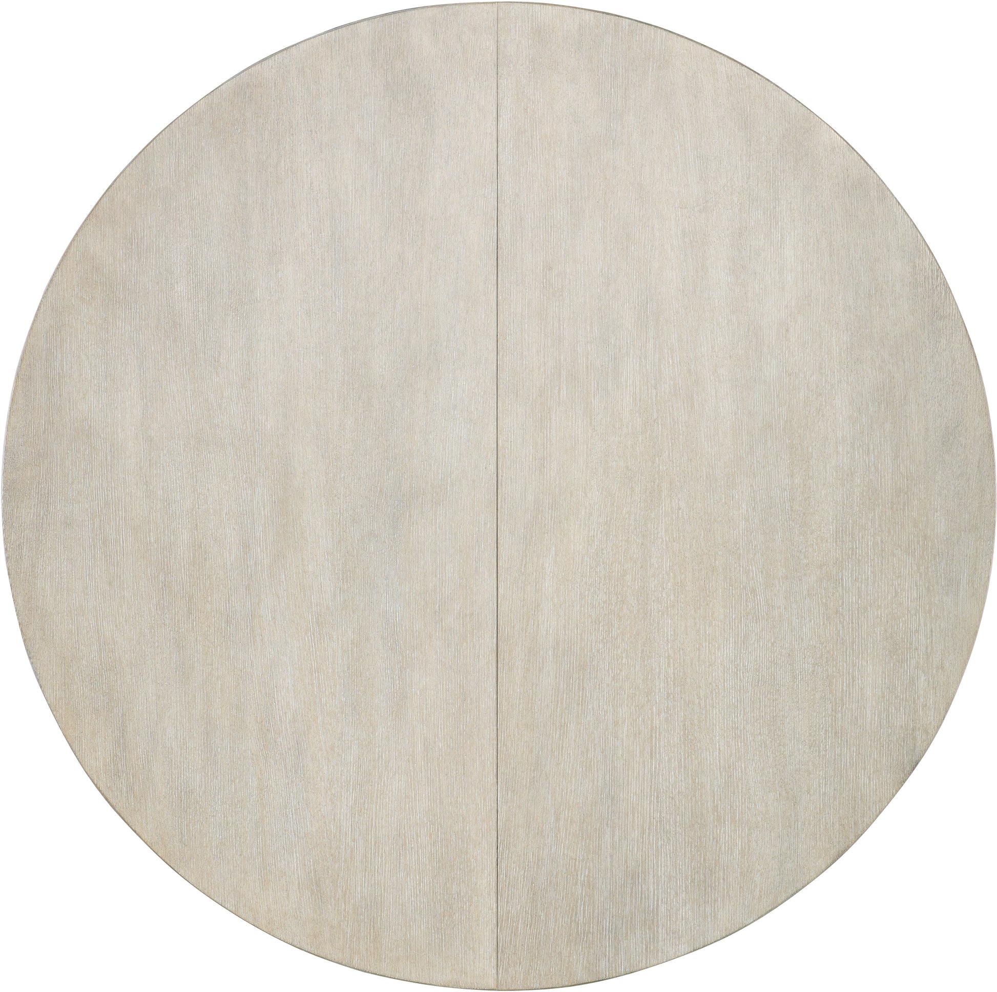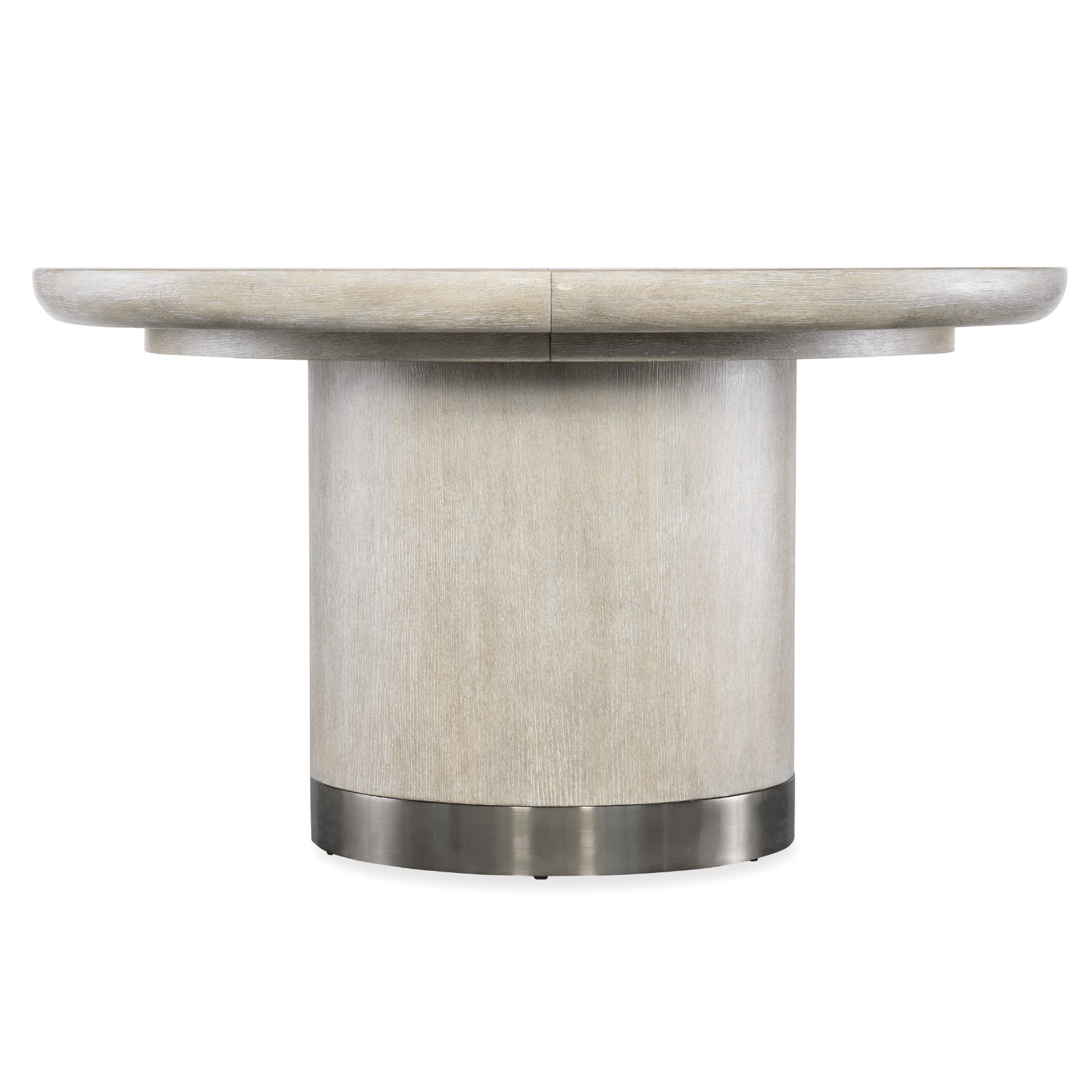 Inspired by decades of design movements with an unmistakably modern aesthetic that transcends time, the Modern Mood Round Dining Table is a statement piece with a softly sophisticated profile. Featuring metal banding accents on the base in a warm pewter finish, it is crafted of Quartered Oak Veneers in a Diamond Finish with crystal-like alabaster hues. With one 18-inch leaf, the table extends up to 72 inches round. Unbound by geographical design, Modern Mood presents itself as an evolution of design choices, spanning a variety of decades and design movements, while maintaining an unmistakably modern aesthetic that transcends time. The 90-piece collection includes a bedroom, dining room, home office, accent, and occasional items characterized by substantive forms with soft architectural details. Elevated materials and brushed metal accents in a warm pewter finish are evident throughout the collection, including metal banding and edging as well as marble and glass accents. Crafted with flat-cut quartered oak veneer with wire-brushed detailing, Modern Mood is presented in two finishes: Mink and Diamond. Delivering a dark, earthy brown with notes of black, Mink delivers a timeless aesthetic. A much lighter presentation is achieved with the crystal-like alabaster and pewter hues of the Diamond finish, delivering a soft sophistication.