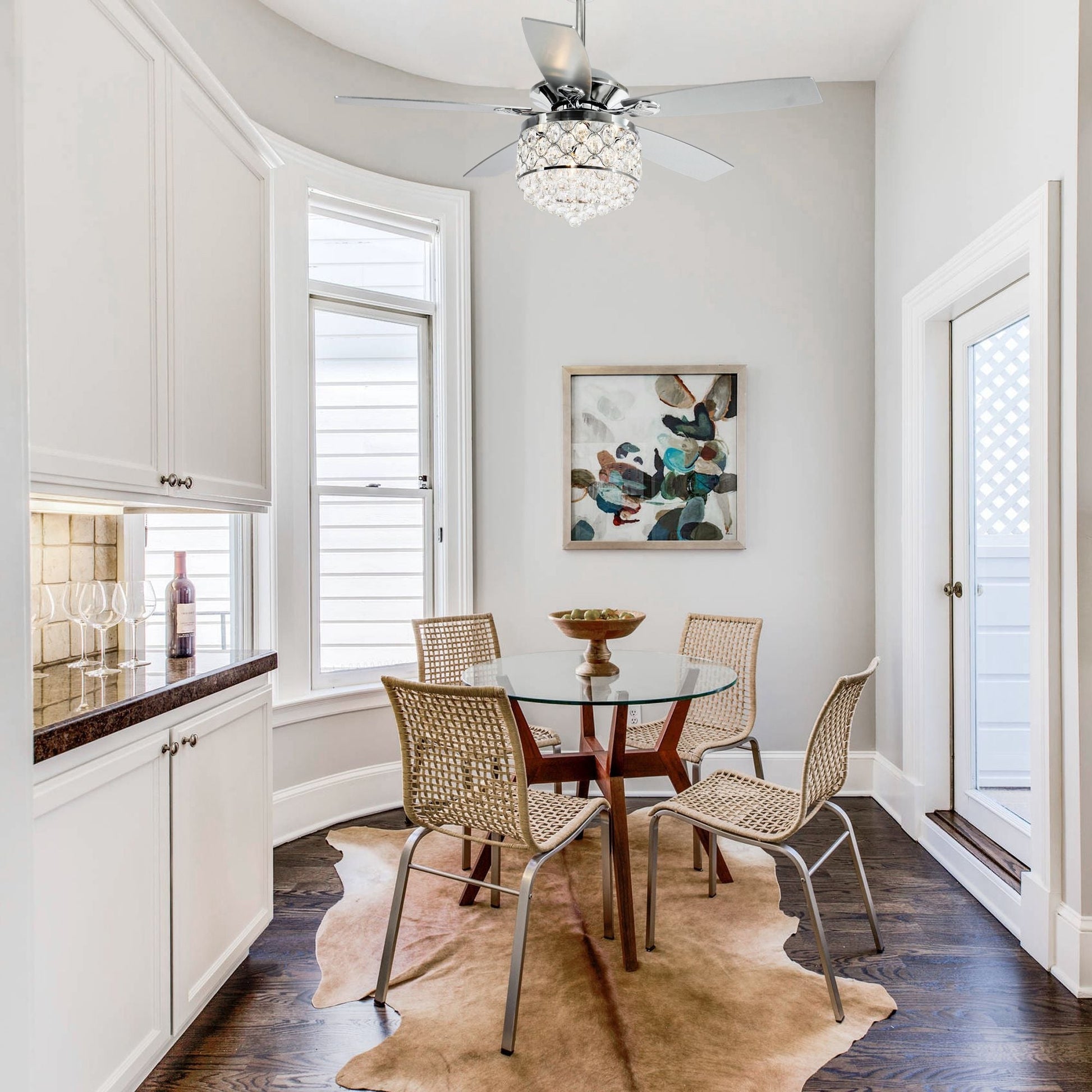 Chrome/ Crystal 4-light Chandelier/ Ceiling Fan...