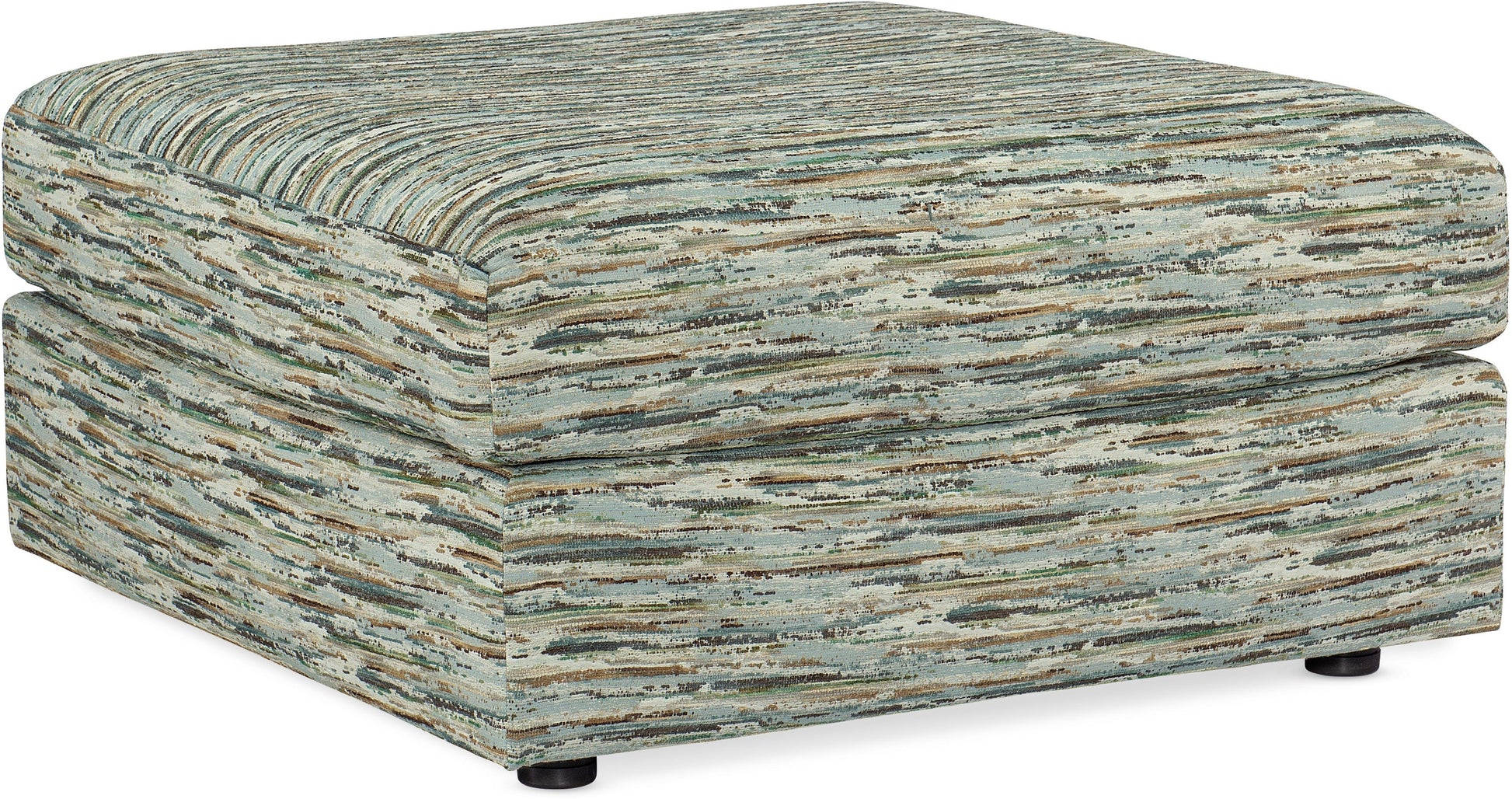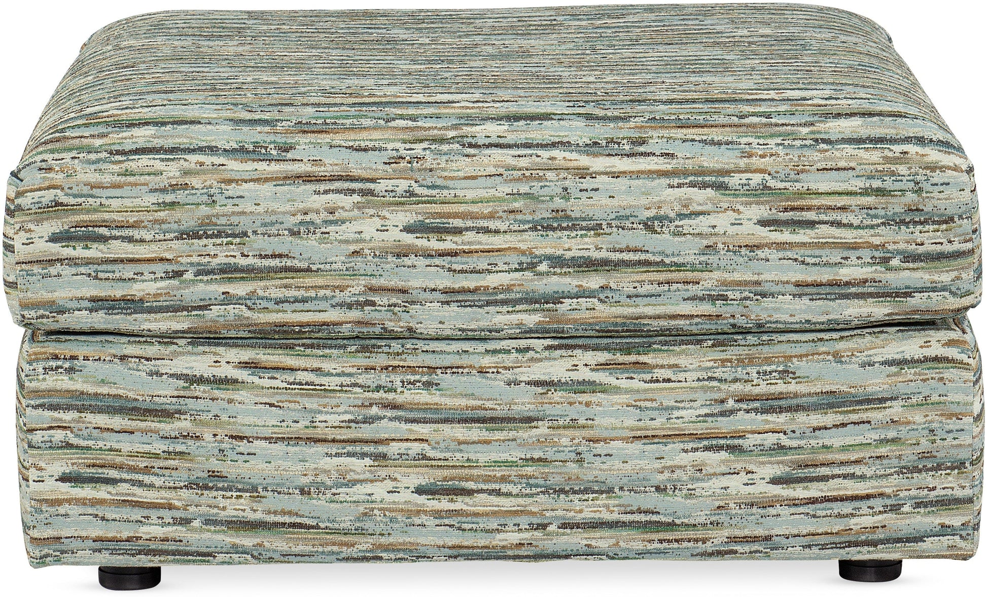 - Includes a matching ottoman featuring textured aqua detailing that complements the included five rectangular accent pillows.