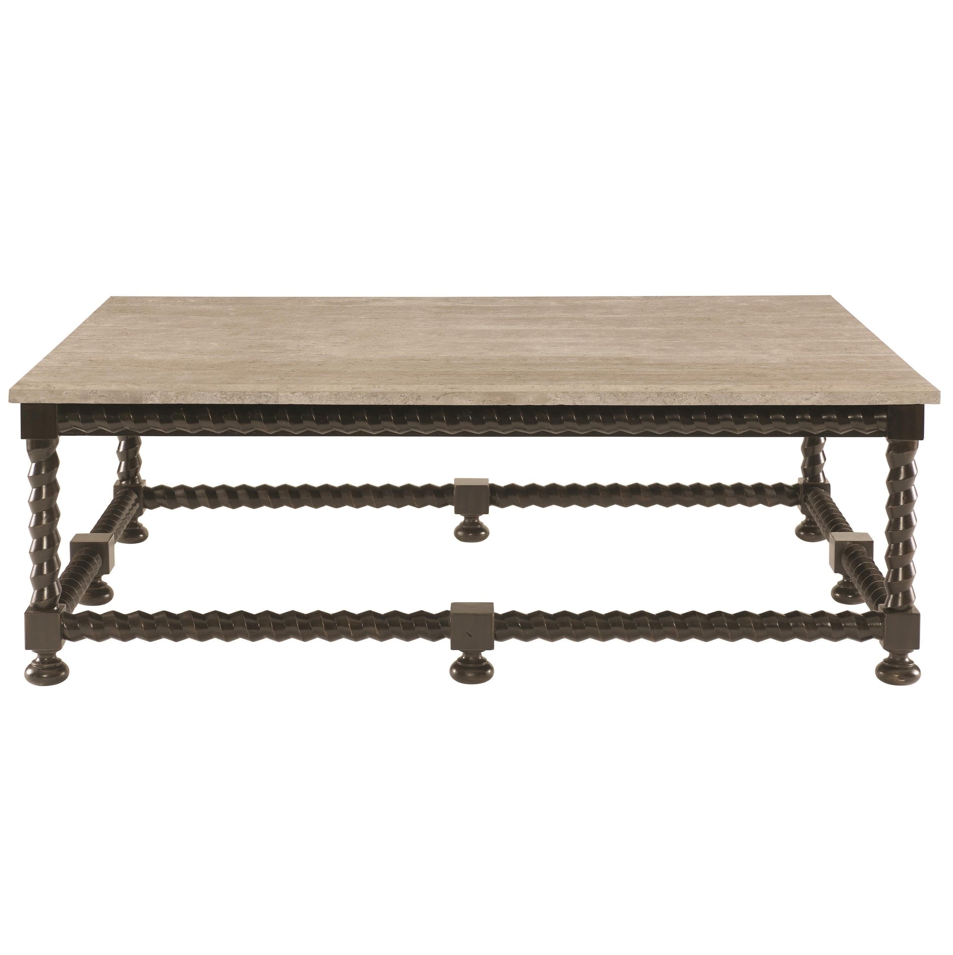 Impeccably crafted, the Cordova cocktail table is a unique piece that brings a chic, polished look to an interior. A modern update on a style popular in the early Baroque period, the spiral wood base creates visual interest and a sense of movement. A rich ebonized finish provides a contrast to the travertine, further enhancing the appeal of this eye-catching design.