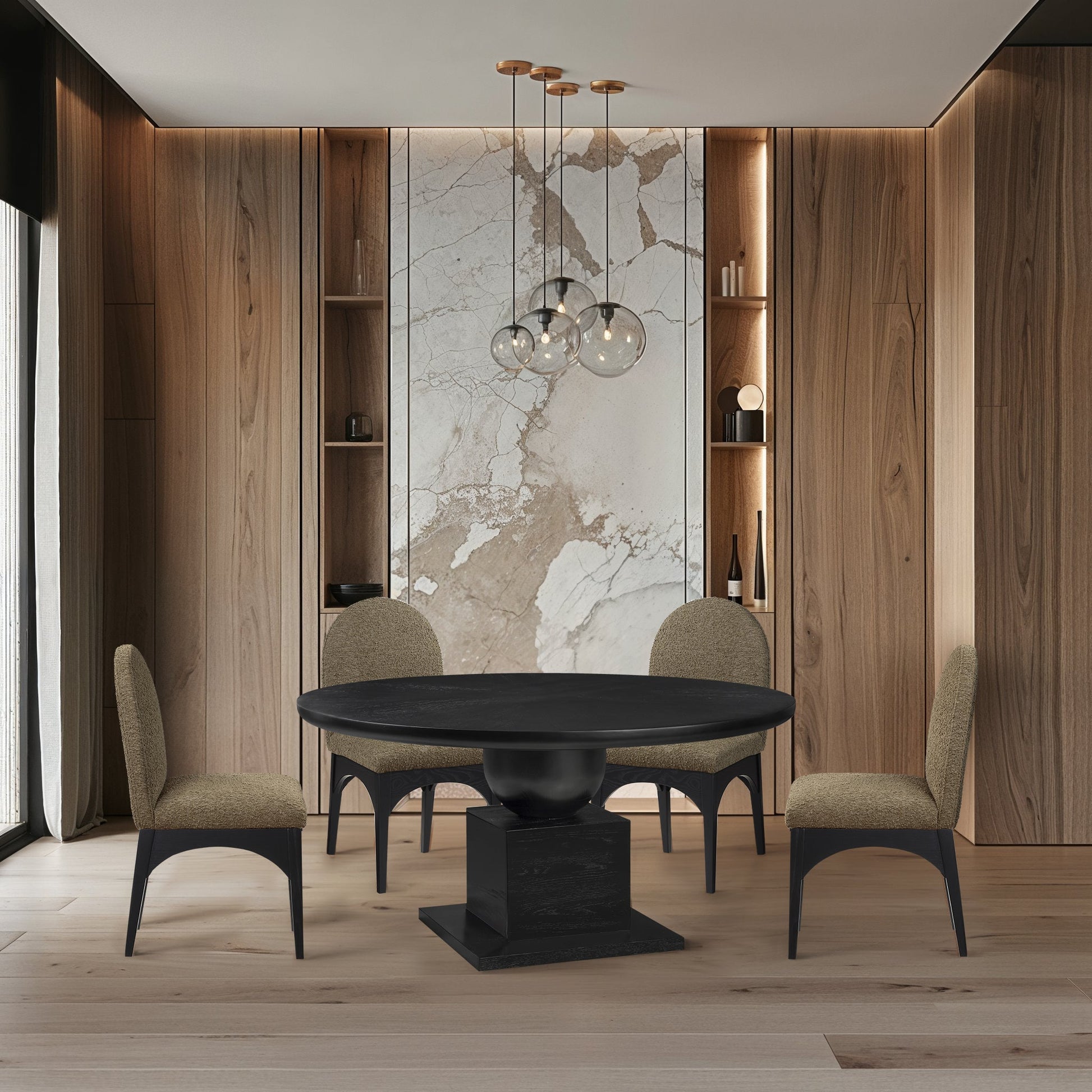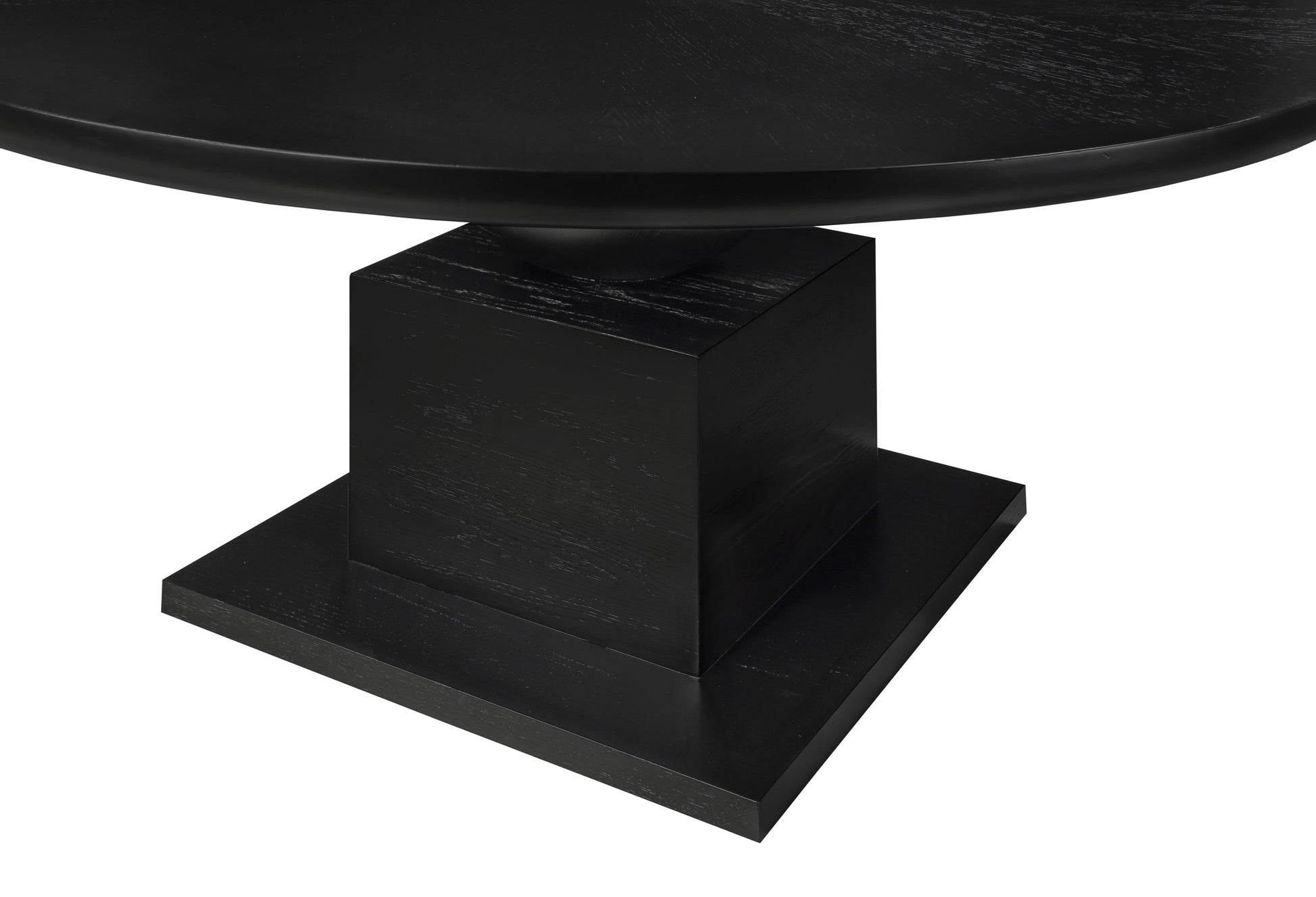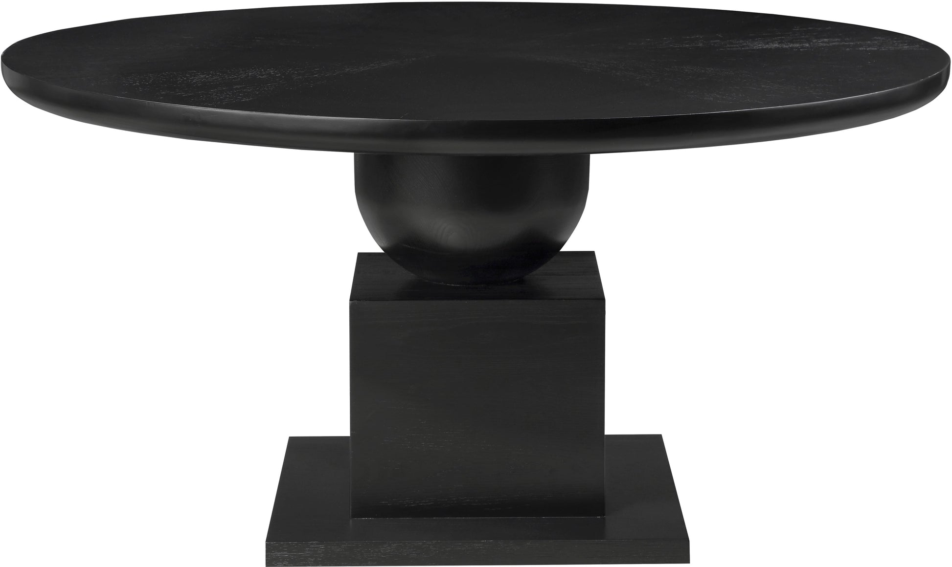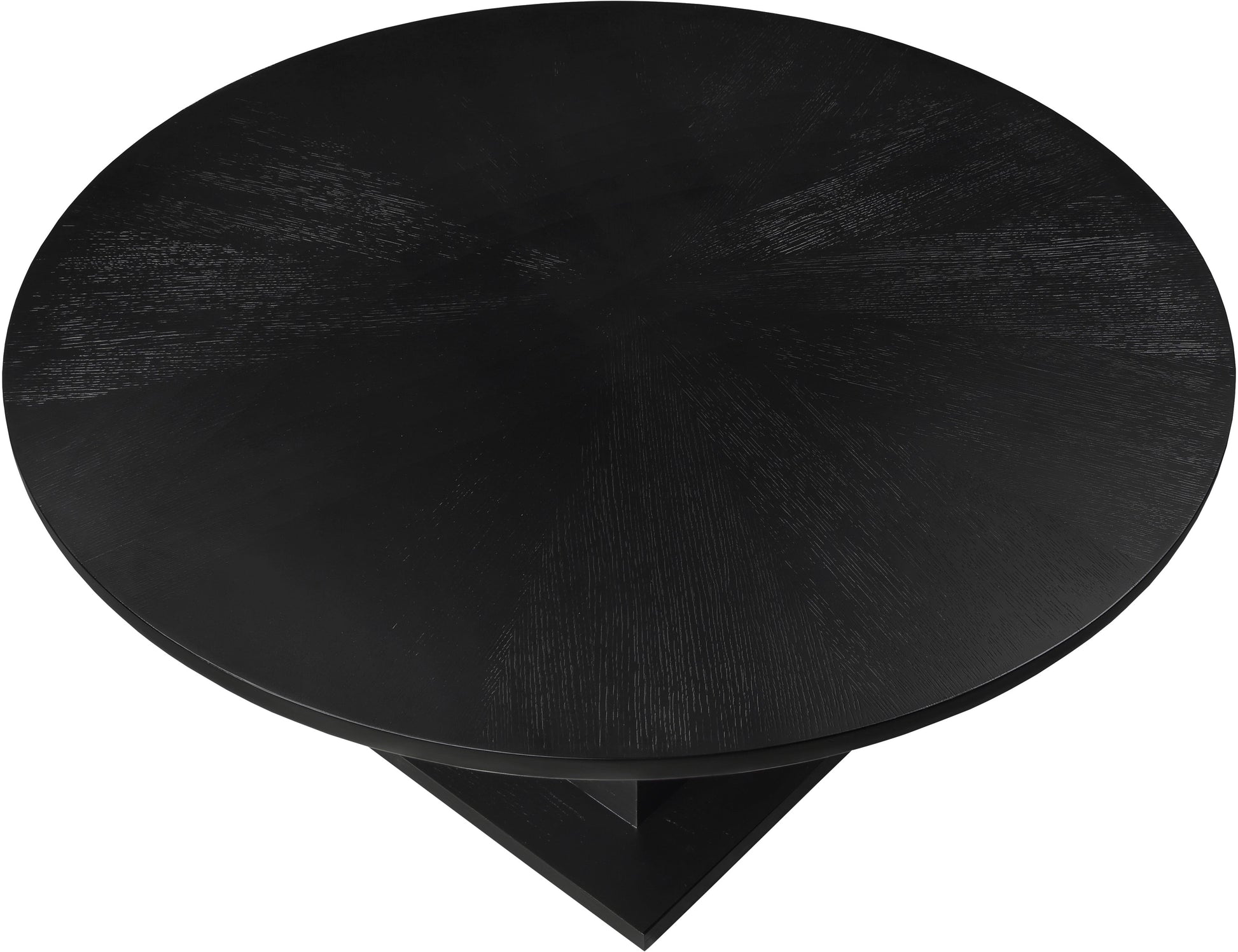 Plan meals large and small around this handsome Rishal black dining table. Destined to become a favorite gathering spot for family and friends alike, this pretty table garners oohs and aahs from every angle. Its rich black finish, oak veneer, and mix of solid wood and MDF combine for durability and style. The reverse bevel edge top adds a touch of sophistication, complemented by the mid-century modern design of the artful columnar base with geometric inspiration.