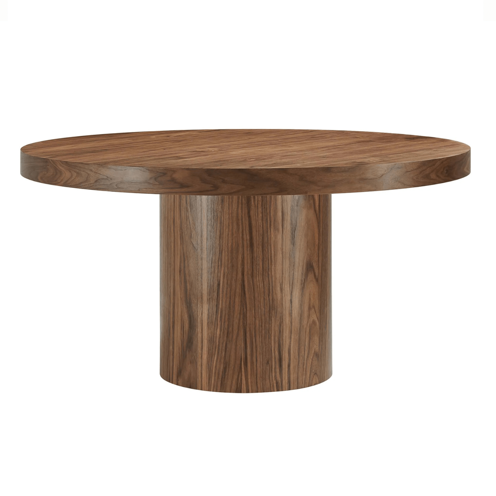 Embrace warm memories and genuine connection while gathered around the Gratify 60' Dining Table. Commanding a bold presence in your dining room, this round table features a sturdy MDF construction with beautiful wood grain veneer to complement its strikingly simplistic modern design. This 60' dining table comfortably accommodates up to 6 people. Includes non-marking foot pads to protect flooring. Assembly required. Weight Capacity: 330 lbs.