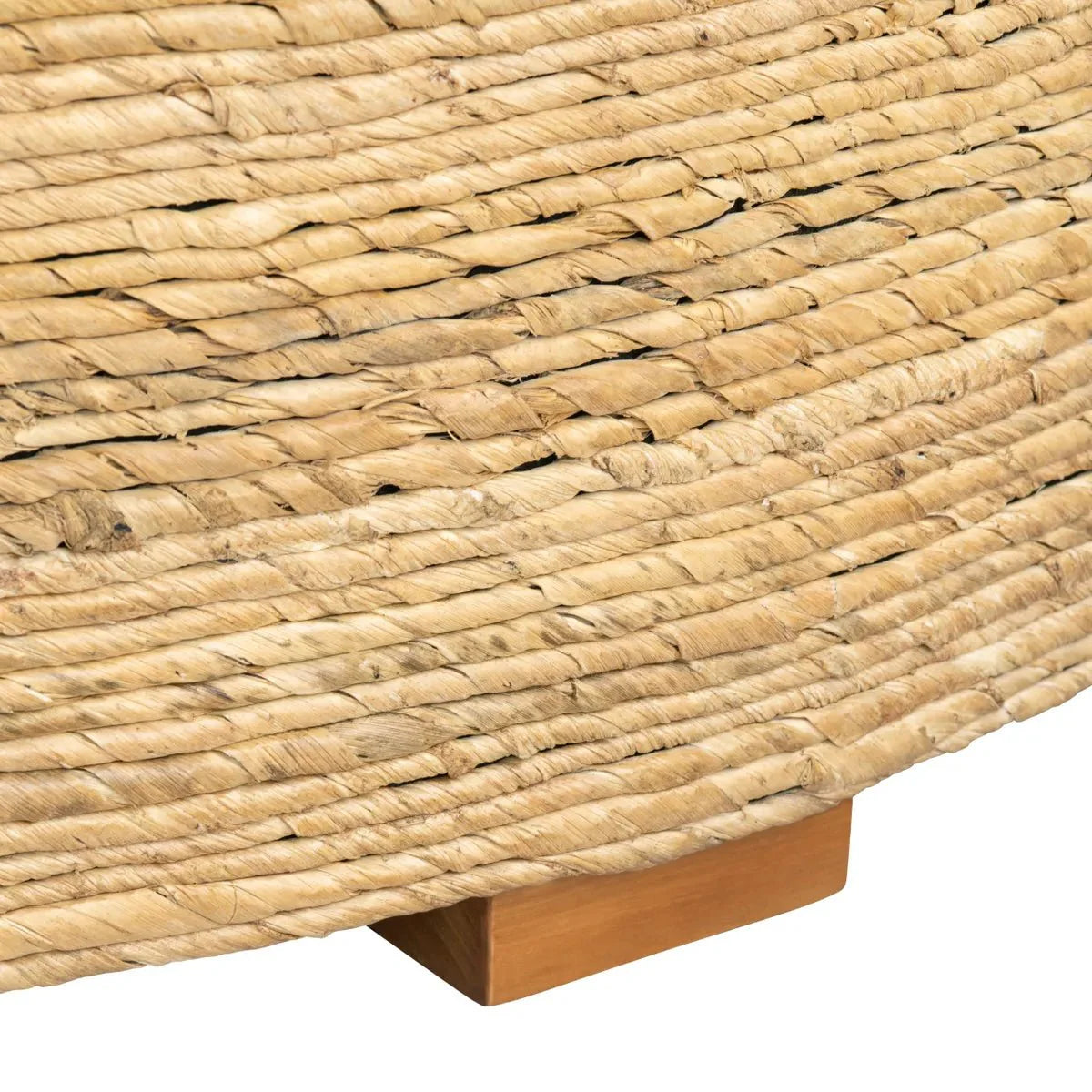 The Costa Rica Banana Rope Cocktail Table by Crestview Collection is a striking work of art with rustic-bohemian finesse. Constructed with a wooden foundation, this intricate design is wrapped in an elaborate overlay of natural banana palm material. Showcasing its natural tan finish, the palm leaves are twisted into a rope that envelopes the table's silhouette in a mesmerizing, patterned display. As durable as it is decorative, this rustic-modern table is expertly crafted for dependability that is guaranteed to spark conversation for years to come.