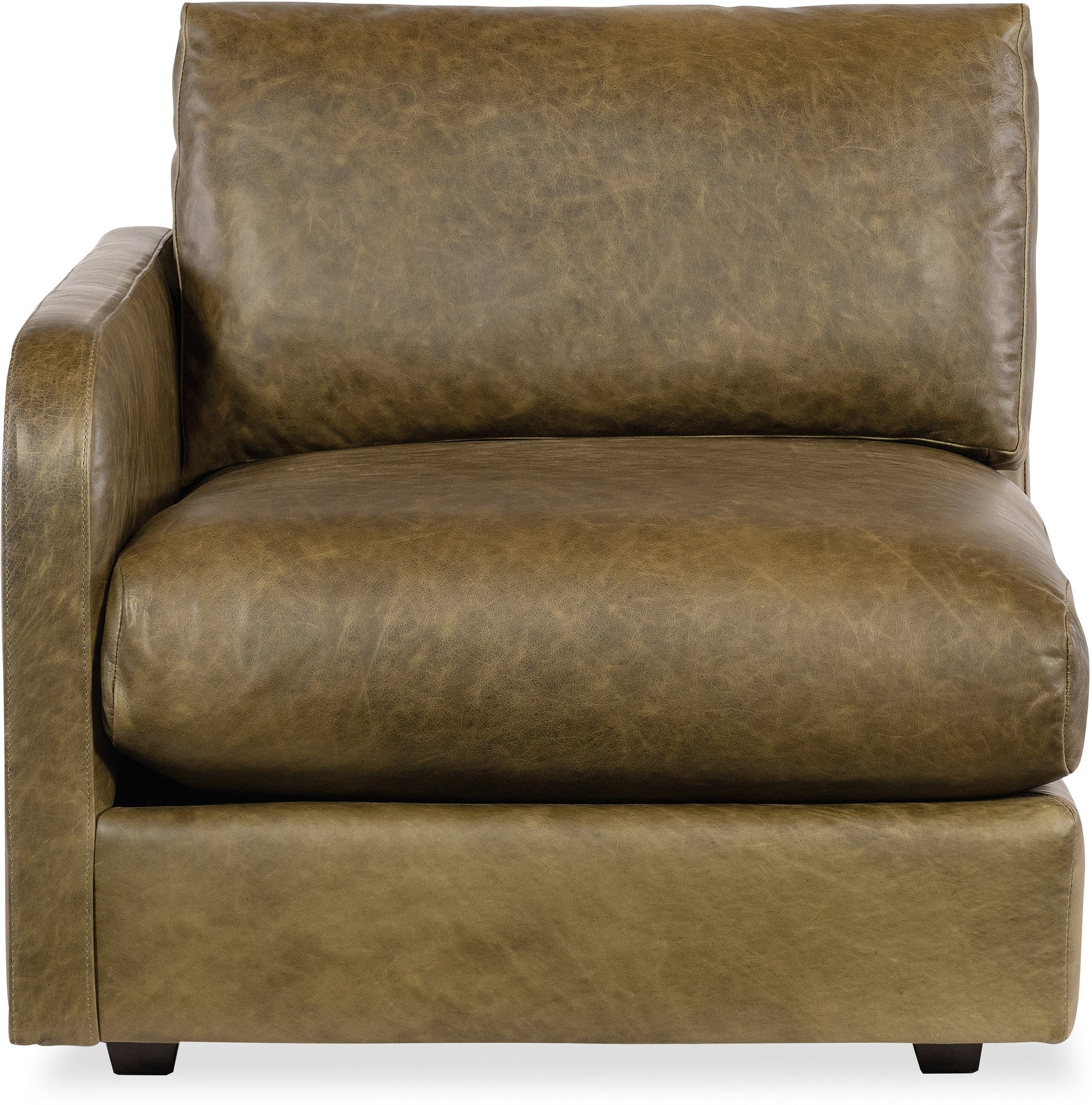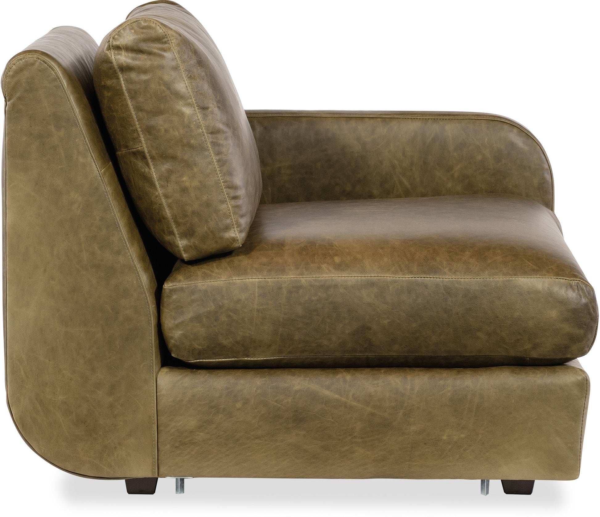 A study in sophisticated minimalism, the Darien Leather Sectional blends tailored comfort with sculptural presence. Draped in luxurious aniline top-grain leather, its muted olive finish offers a warm yet refined aesthetic, perfect for modern or transitional spaces. The design is anchored by slim, rounded track arms that bring soft curves to its structured silhouette, while deep, plush seating and supportive back cushions invite everyday lounging in elevated style.