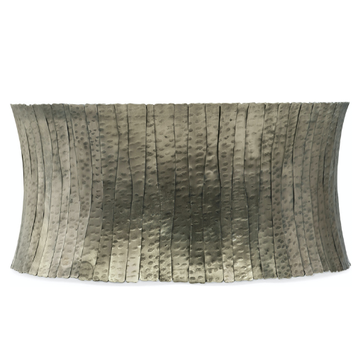 - Finish: Dark finish on wood top with hammered metal base with distressing.