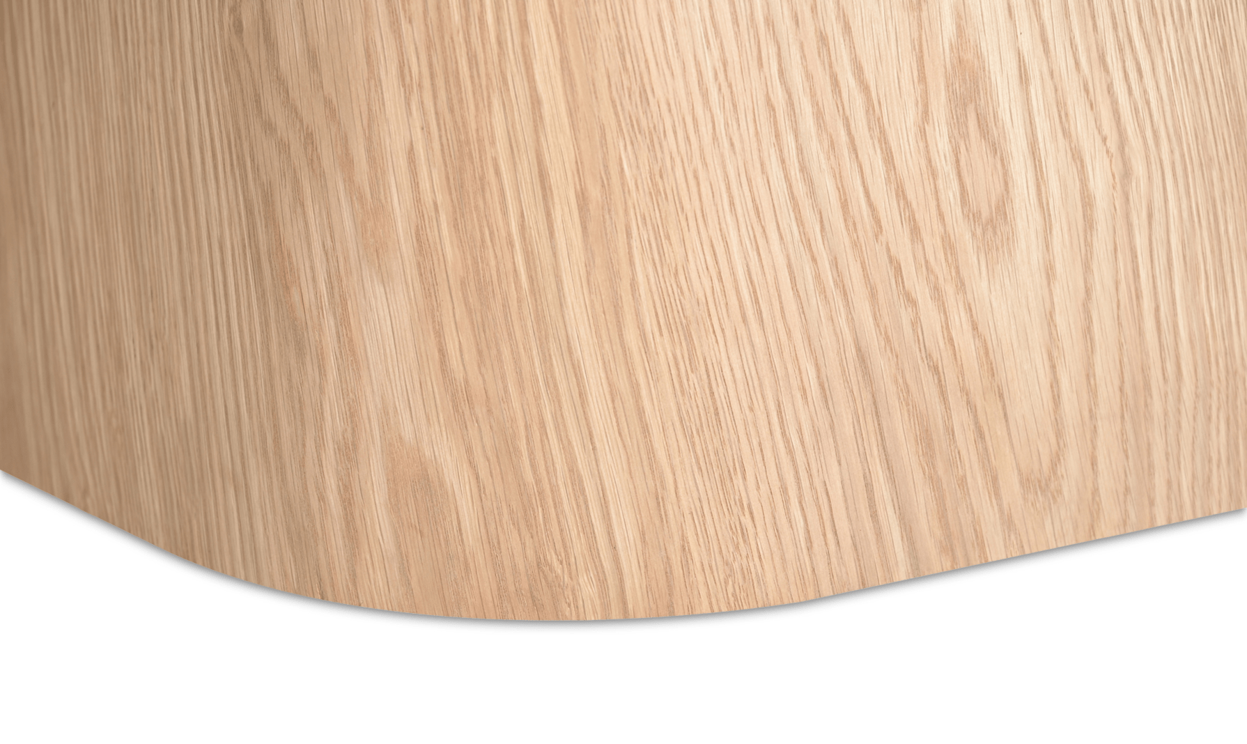 - Five-sided base in oak veneer over a durable mixed-wood frame