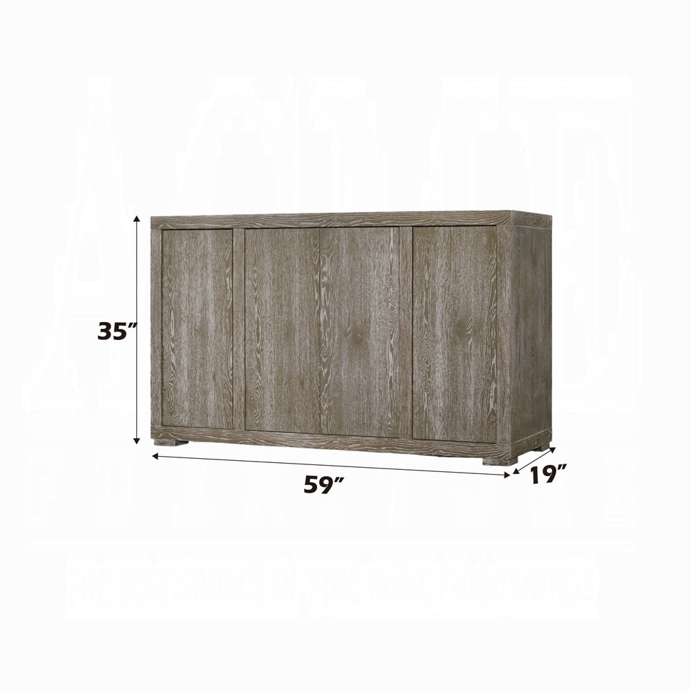 The Gabrian Server exudes quiet sophistication with its streamlined silhouette and natural reclaimed gray finish. Designed for modern interiors that value organic textures and minimalist form, this piece balances refined craftsmanship with functional design. Crafted from solid poplar and oak veneer, it features a smooth, wire-brushed grain that highlights the wood’s natural character. Behind four sleek wooden doors, spacious compartments provide concealed storage for dinnerware, linens, and serveware — perfect for a curated dining space or stylish living area.