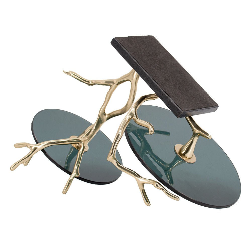 Giani 2-Tier Cake Stand – Gold Aluminum & Black Glass