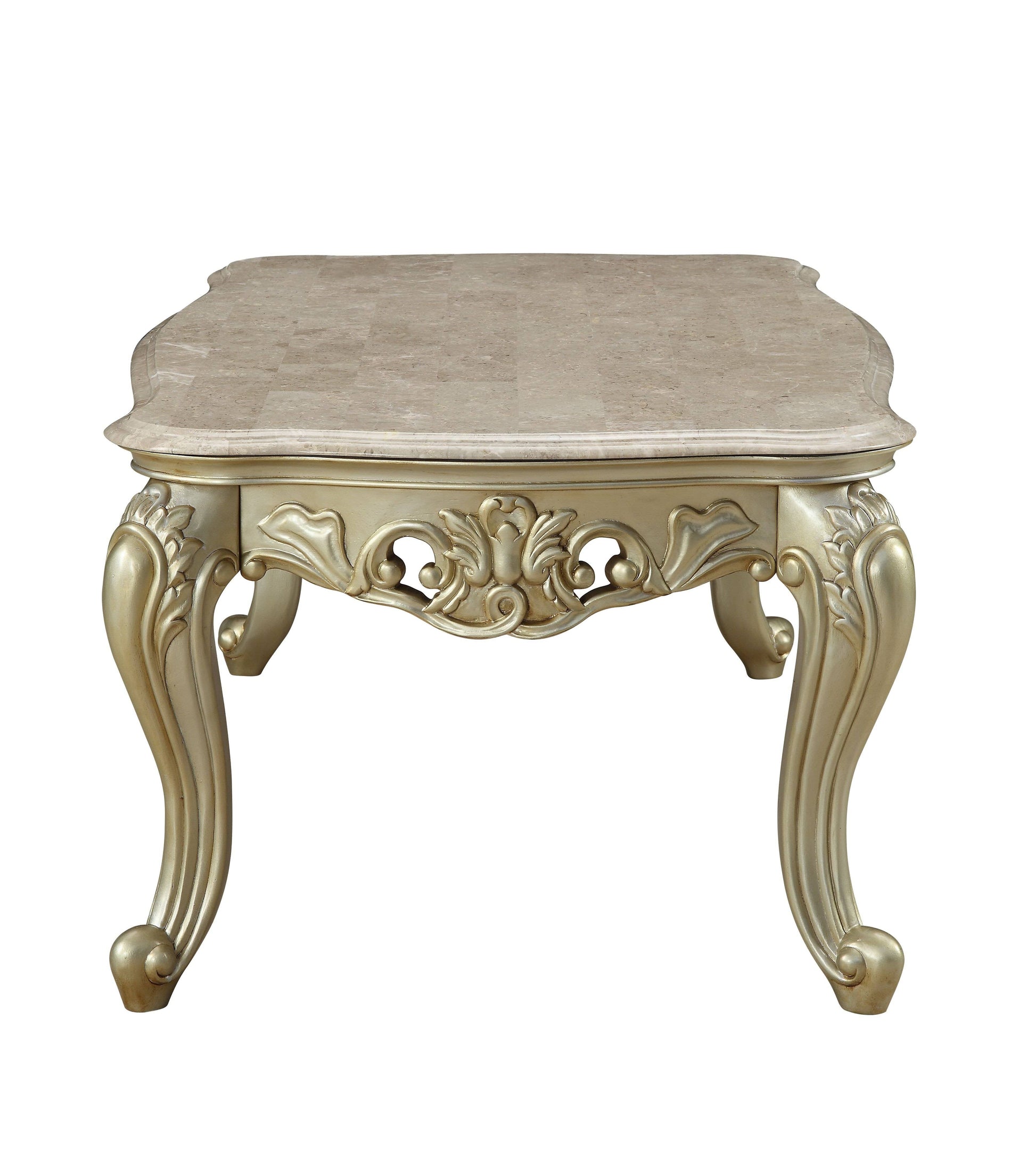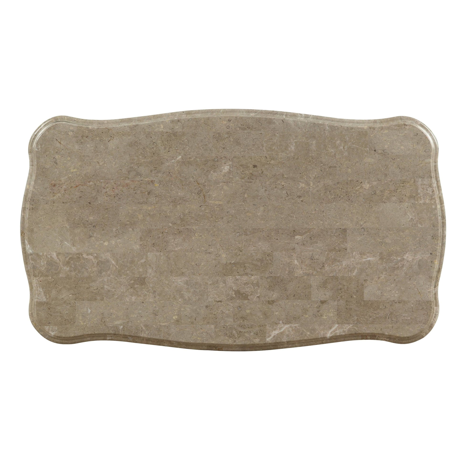 Elaborate old world designs are treated with a distinctly modern touch on the Gorsedd coffee table. This elegant wood table features a stunning scalloped marble table top and detailed table legs in a rich antique white finish. This unique rectangular table feature scalloped apron and carved floral motifs. With accent details such as shell and acanthus leaf scrolling and Queen Anne legs, the look of this beautiful occasional table is solidified.