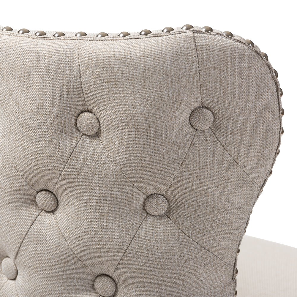 Enhance your kitchen or home bar with the Gradisca Swivel Bar Stool Set in Cream. Featuring a modern and contemporary design, each stool is crafted from solid rubberwood with a dark walnut finish for lasting durability. The fully upholstered polyester seat and back provide plush comfort, while the button-tufted cutout backrest with silver nail head trim adds a subtle touch of glamour. Tapered legs with stretcher support complete the look, making these stools stylish and functional for everyday use. Made in Malaysia, assembly is required.