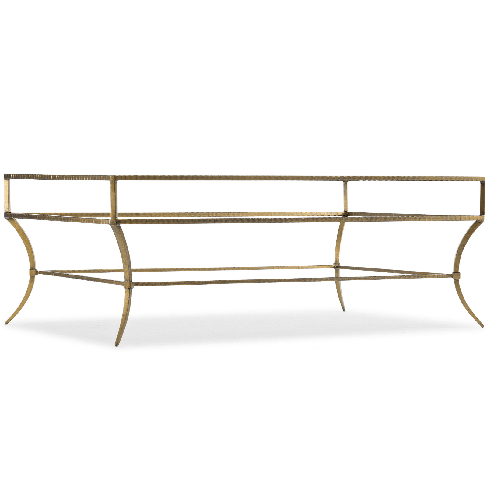 Lighter than air with a dash of bling, the delicately-scaled Larueng Cocktail Table combines a hammered iron frame in a gold finish with a tempered glass top. Give your home a shot of style with our living room furniture. Make this room the perfect spot for conversation, entertaining or just relaxing.