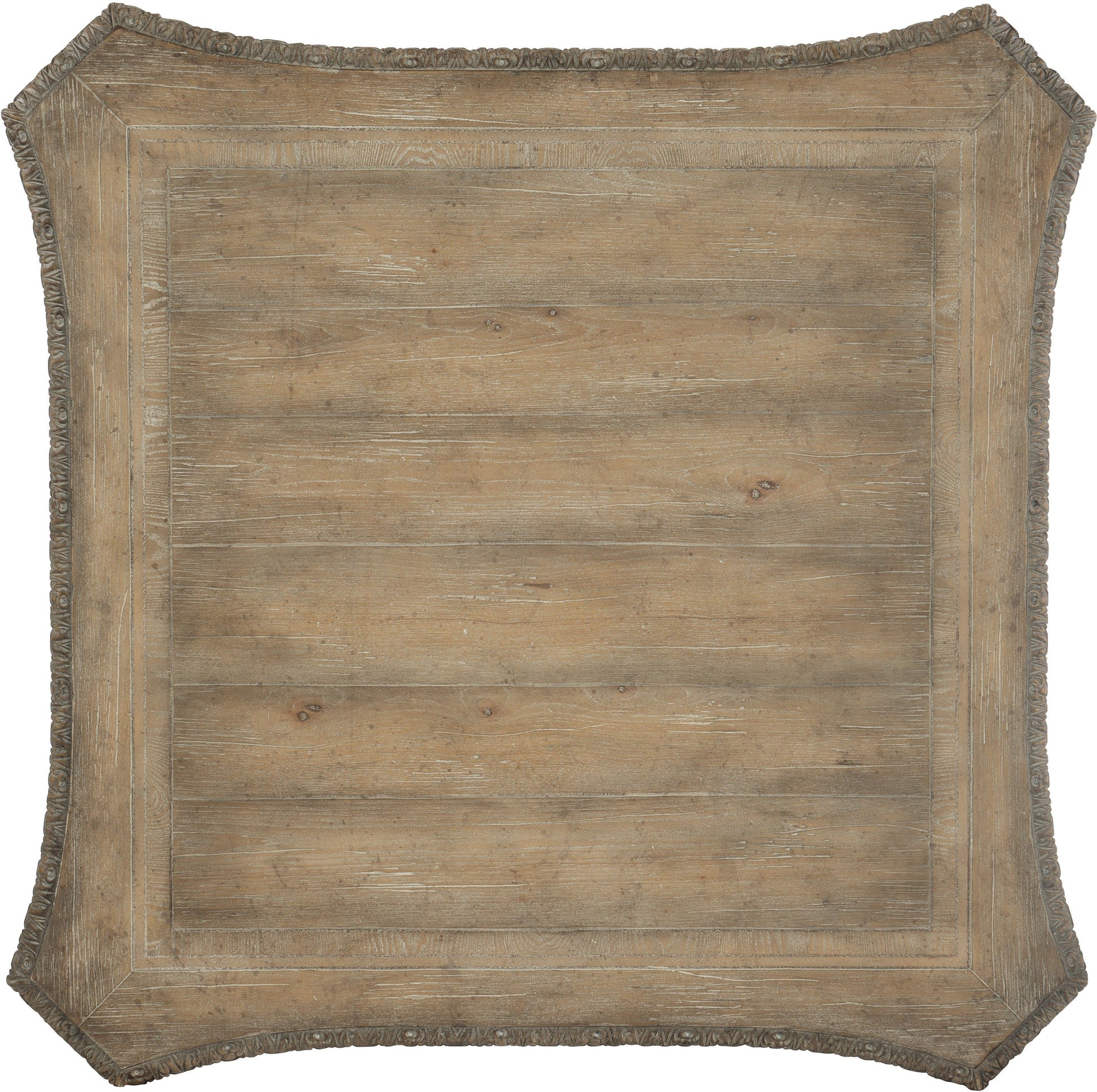 - Distressing includes sandblasting, drawknife, wormholes, and stone.