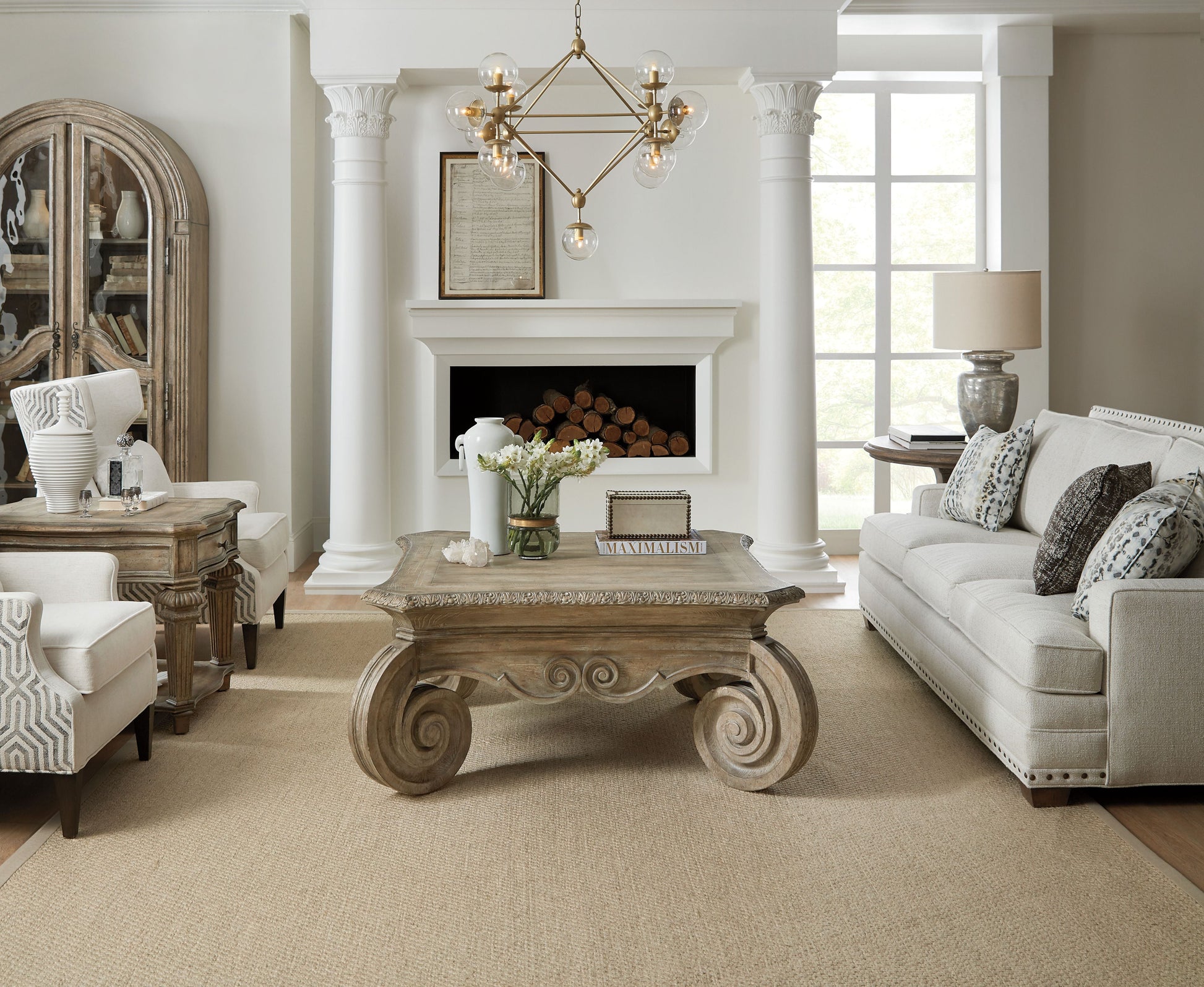 Castella’s over-the-top (and fabulous) cocktail table is punctuated by generously scaled scroll legs and a beautifully carved apron. It has a grand presence at nearly 40 inches square - it will draw your eye to the seating area and be a dramatic surface for accessories and storage. The refined rustic Antique Slate finish projects laid-back luxury. Commanding attention in any space, the impressive scaling of the Castella Collection combines with classic design elements including scrolls, serpentine shapes, rope twist molding, acanthus leaf details and fleur-de-lis accents to create old-world charm. Infused with emotion, the collection's exuberant scale and timeless motifs define its casually opulent style. Presented in an updated mid-tone brown finish with a beautiful patina, Castella offers a Classic European design with an updated twist.