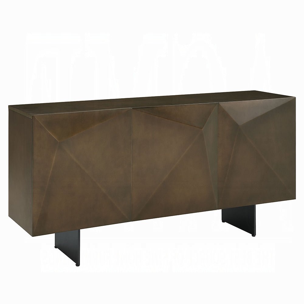 Behind the three doors lies generous storage with adjustable shelving, ideal for organizing dinnerware, linens, or everyday essentials. A warm bronze-toned finish enhances its contemporary edge, making it versatile enough to pair with both modern and transitional interiors.