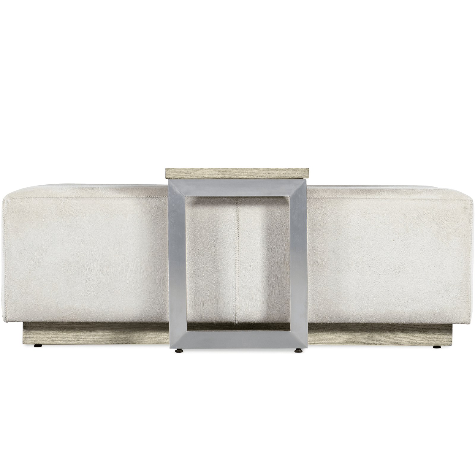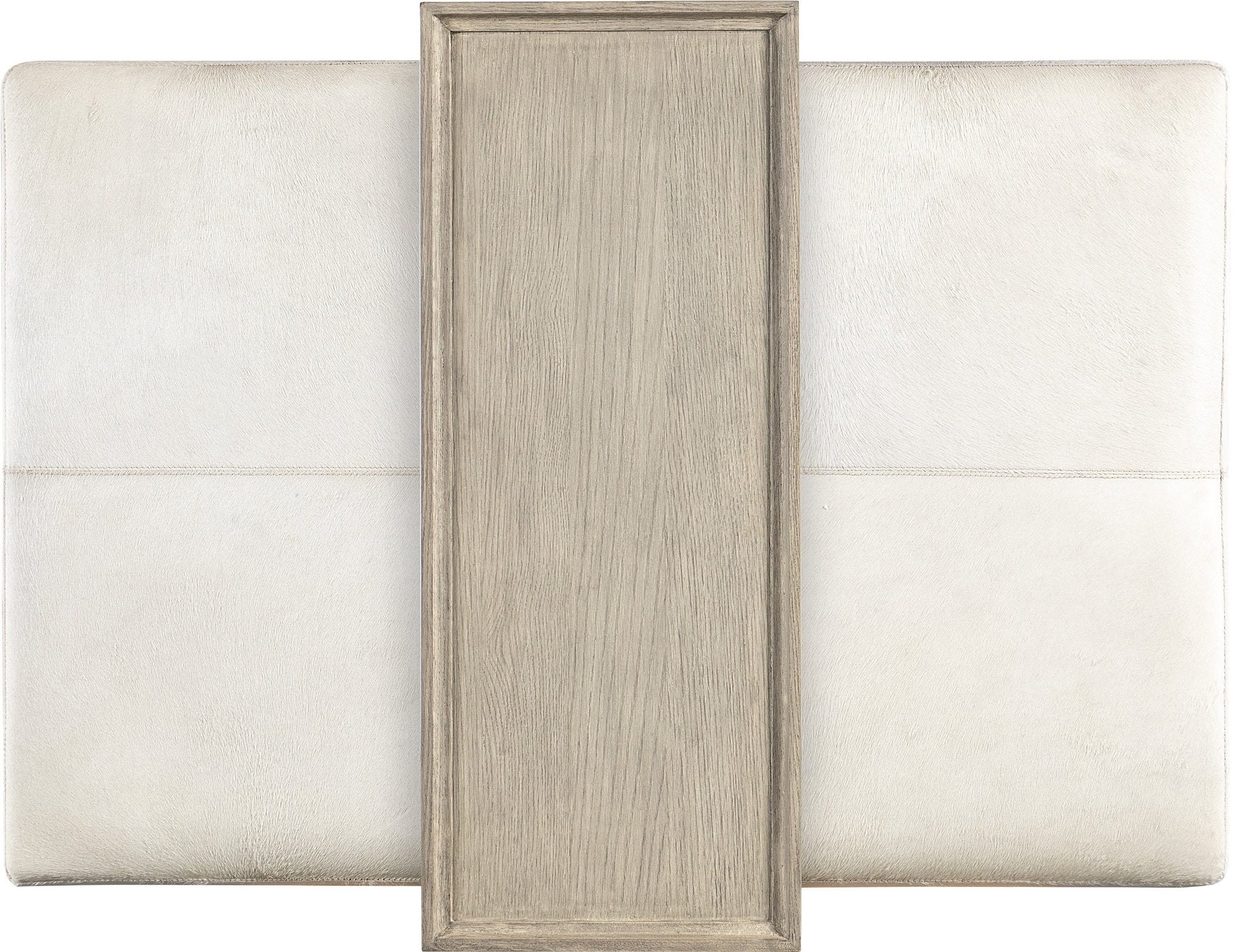 In a user-friendly modern design, the rectangle-shaped Bridged Cocktail Table is upholstered in cream-colored hair-on-hide leather and features a convenient mobile tray top for keeping beverages, snacks or electronics within reach. The tray-top legs are metal-wrapped with a light-finished wood top that matches the wood plinth base. Come closer to Melange, and you will discover something unexpected, an eclectic blending of colors, textures and materials in a vibrant collection of one-of-a-kind artistic pieces.