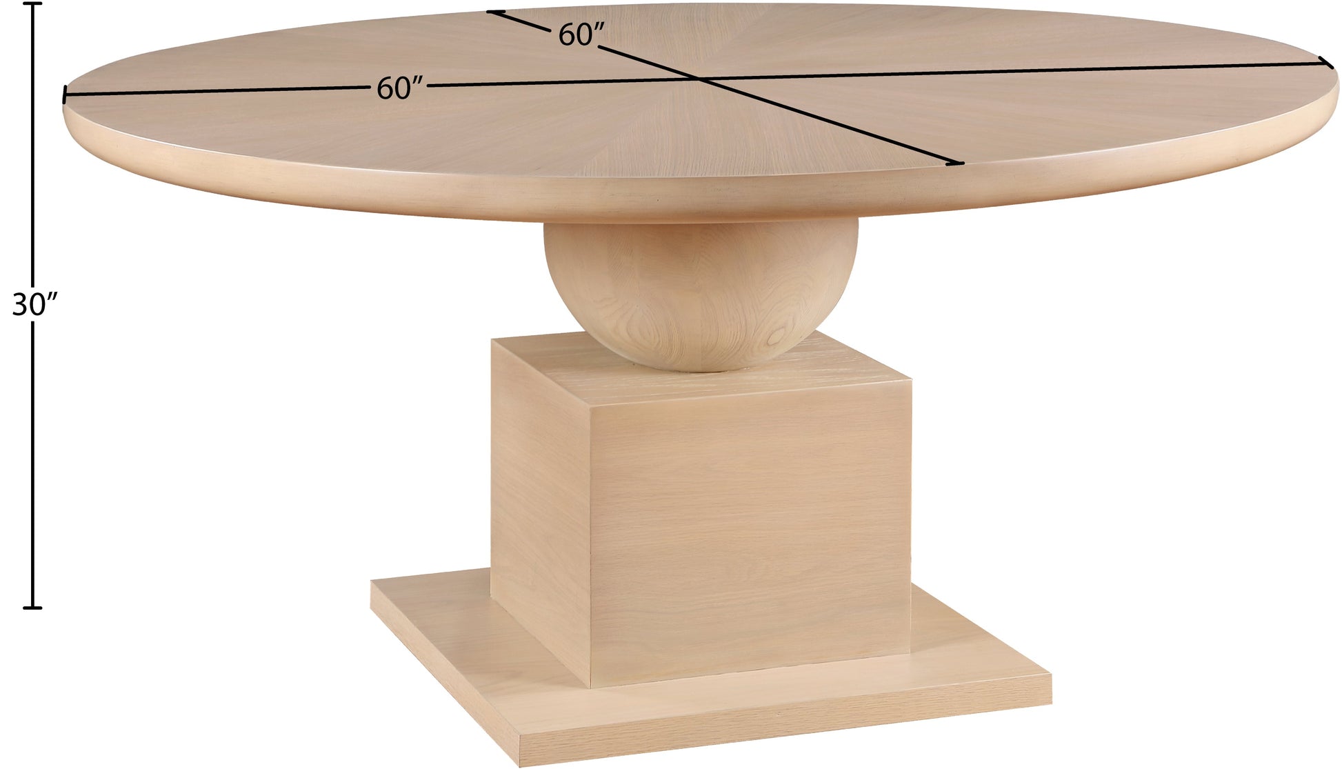 Plan meals large and small around this handsome Rishal natural dining table. Destined to become a favorite gathering spot for family and friends alike, this pretty table garners oohs and aahs from every angle. Its rich natural finish, oak veneer, and mix of solid wood and MDF combine for durability and style. The reverse bevel edge top adds a touch of sophistication, complemented by the mid-century modern design of the artful columnar base with geometric inspiration.
