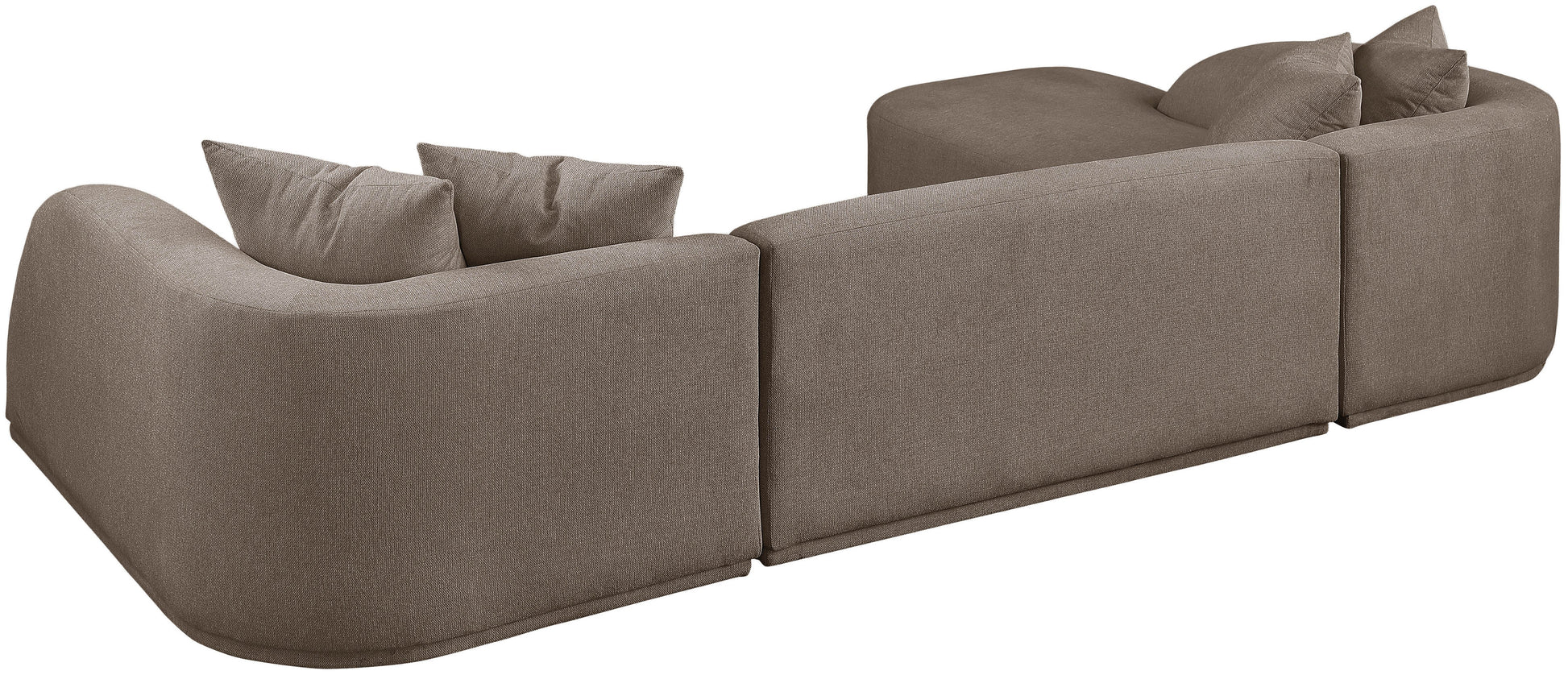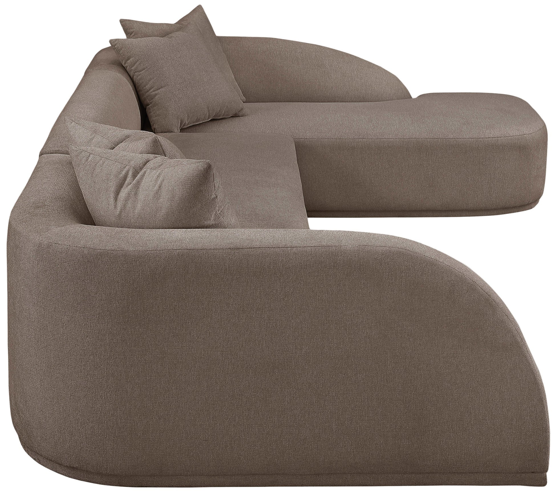 Make movie night at home a regular (and comfortable) affair when you bring this Rita fabric sectional into your living room, den or game room. This handsome unit offers plenty of room for the gang to spread out and get cozy, and its upholstered on every square inch with soft brown polyester fabric for a dreamy feel against your skin as you nap or binge Netflix. Included coordinating pillows complete the look and add to the sectional's cozy vibe.