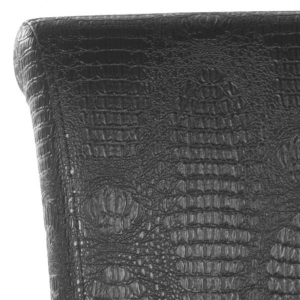 The clean lines of the Seth Bar Stool make it just right for any interior. Featuring a solid birch wood frame in a black finish, Seth offers comfortable seating in black faux croc leather with a gentle curved back for added comfort and style. Silver nail heads heighten Seth’s glamour.